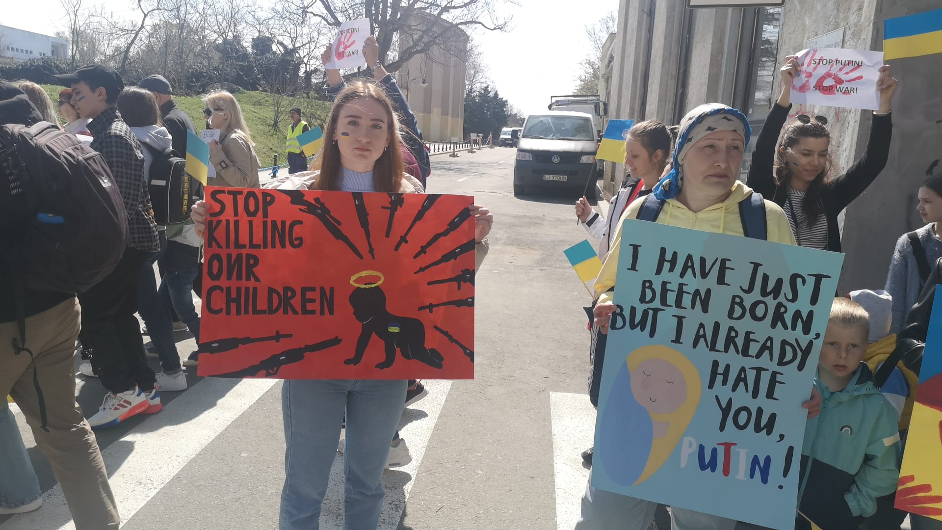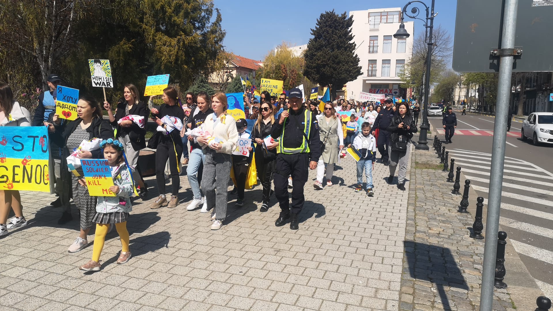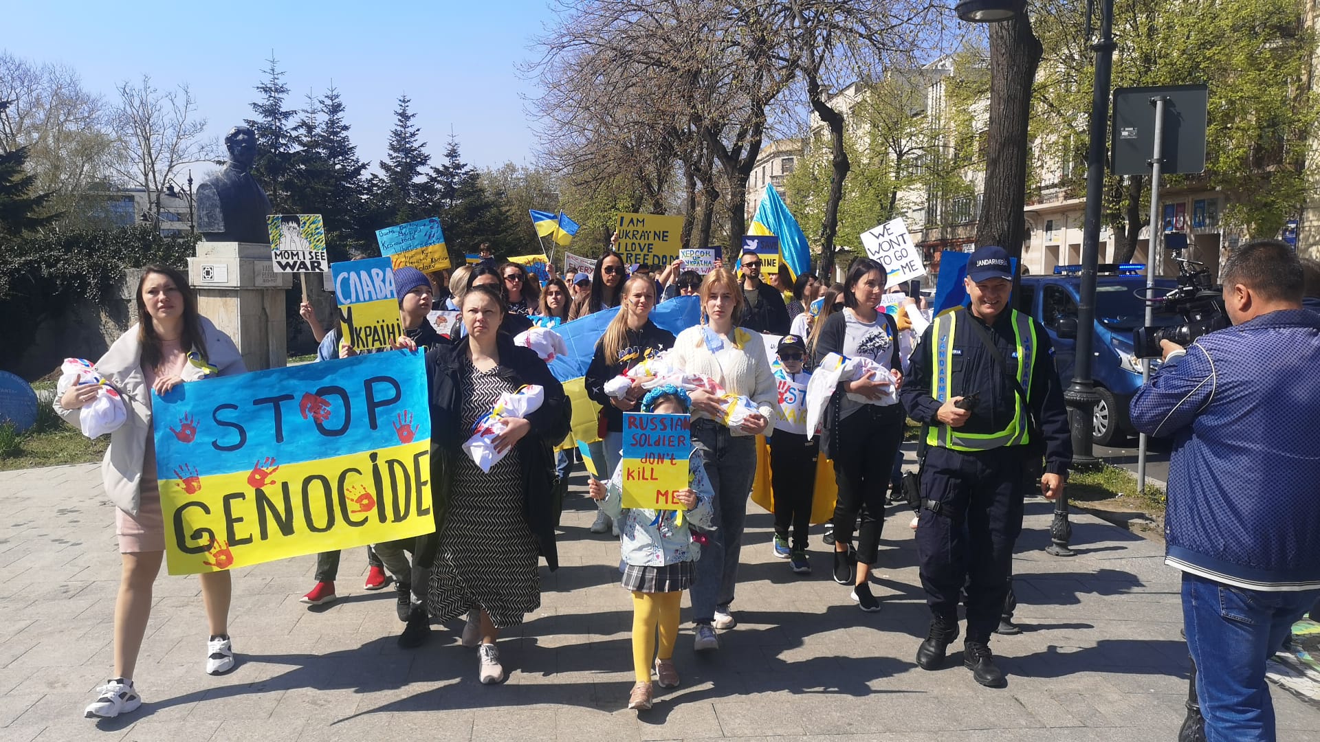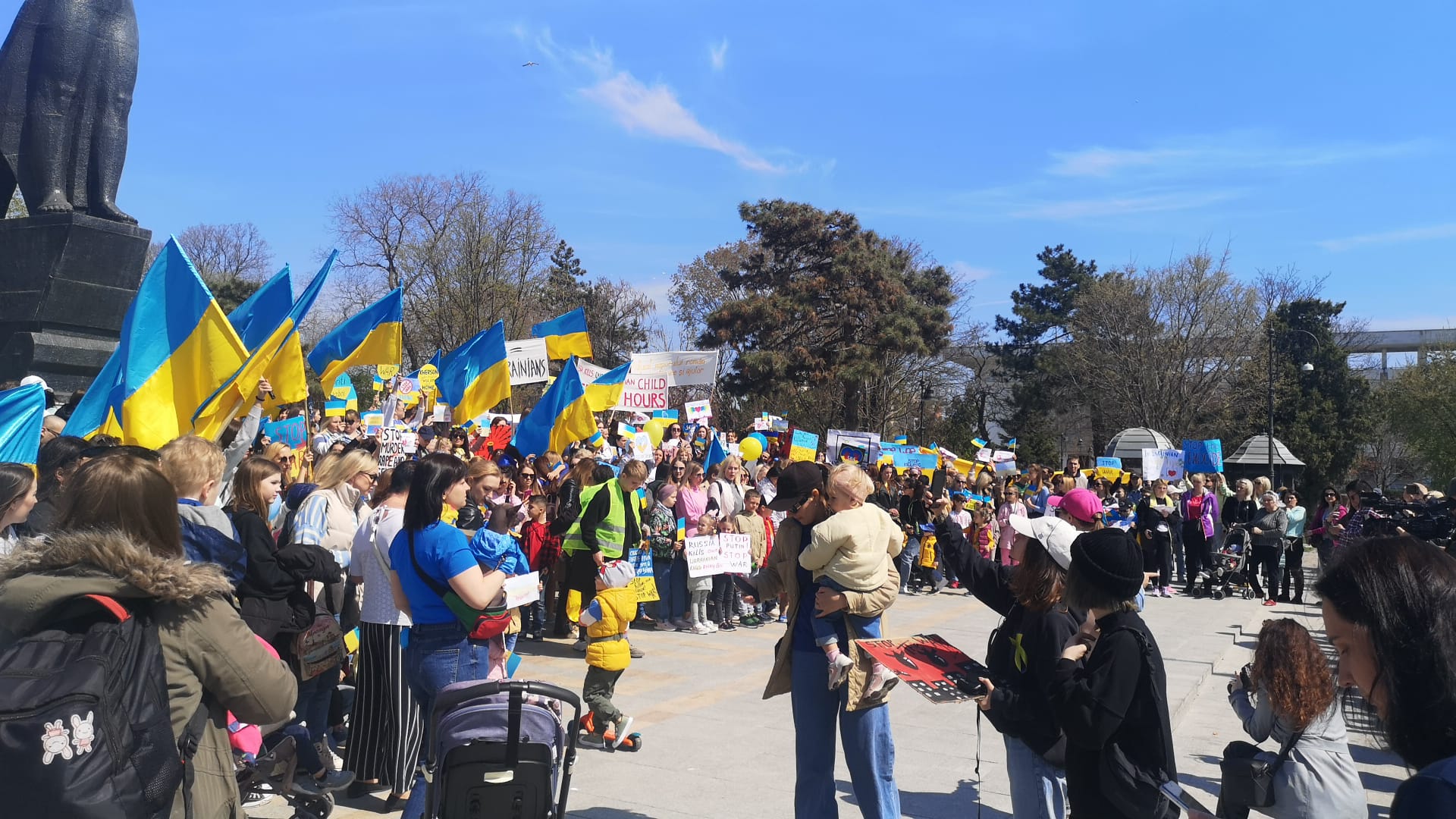 Peste 200 de femei din Ucraina și România au protestat astăzi în fața Consulatului Federaţiei Ruse și pe străzile din Constanța. La mitingul de protest participă mame din Ucraina, care au ajuns la Constanța în urma agresiunii armatei ruse asupra civililor.