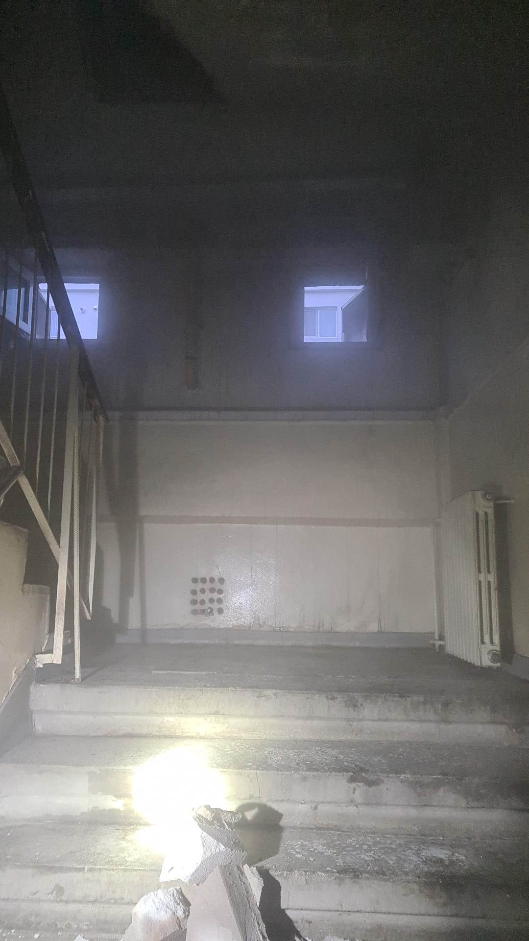 Au ars materiale combustibile (textile, lemne, cauciucuri), depozitate într-o încăpere de aproximativ 10mp situată sub scara blocului.
