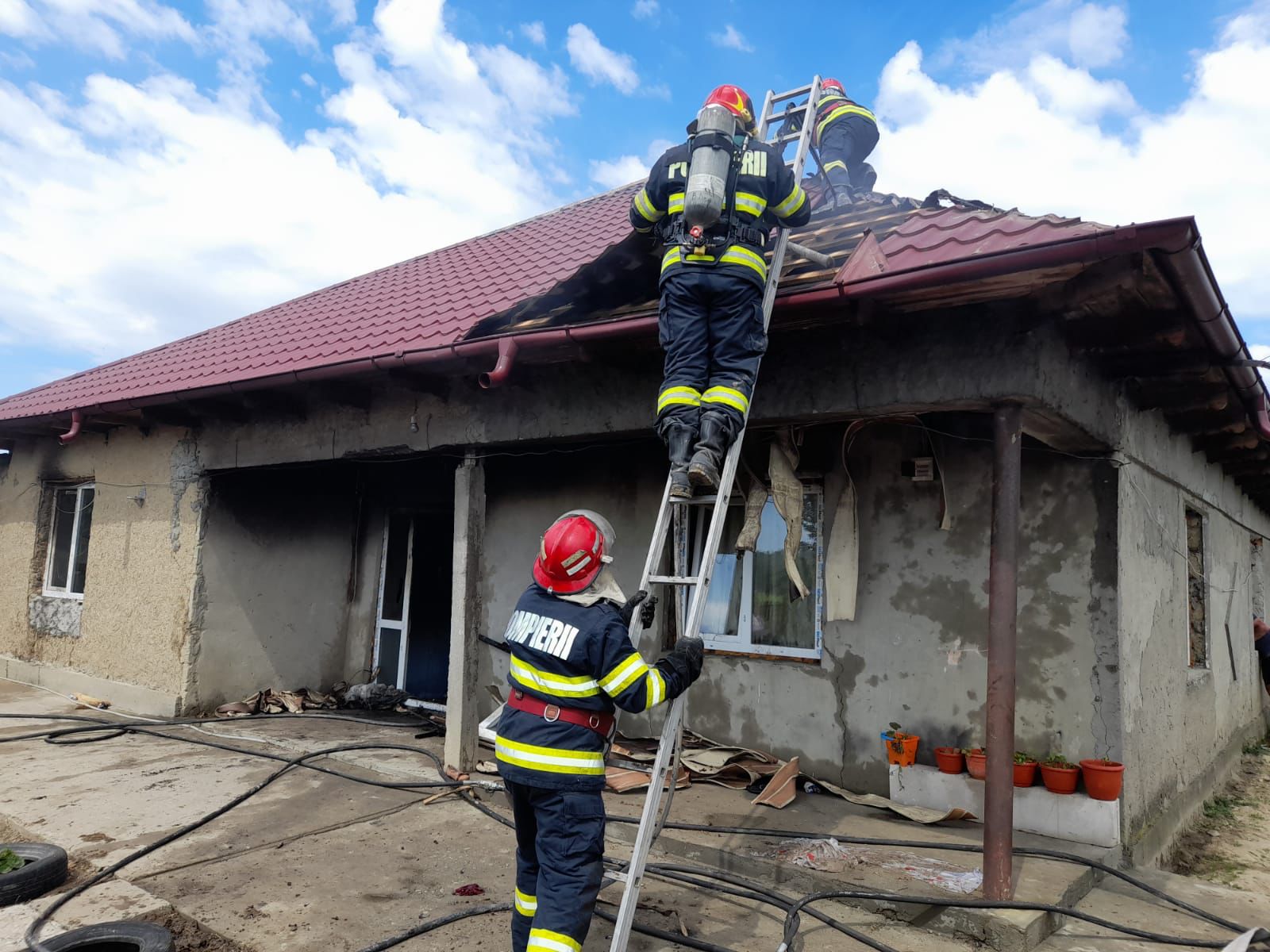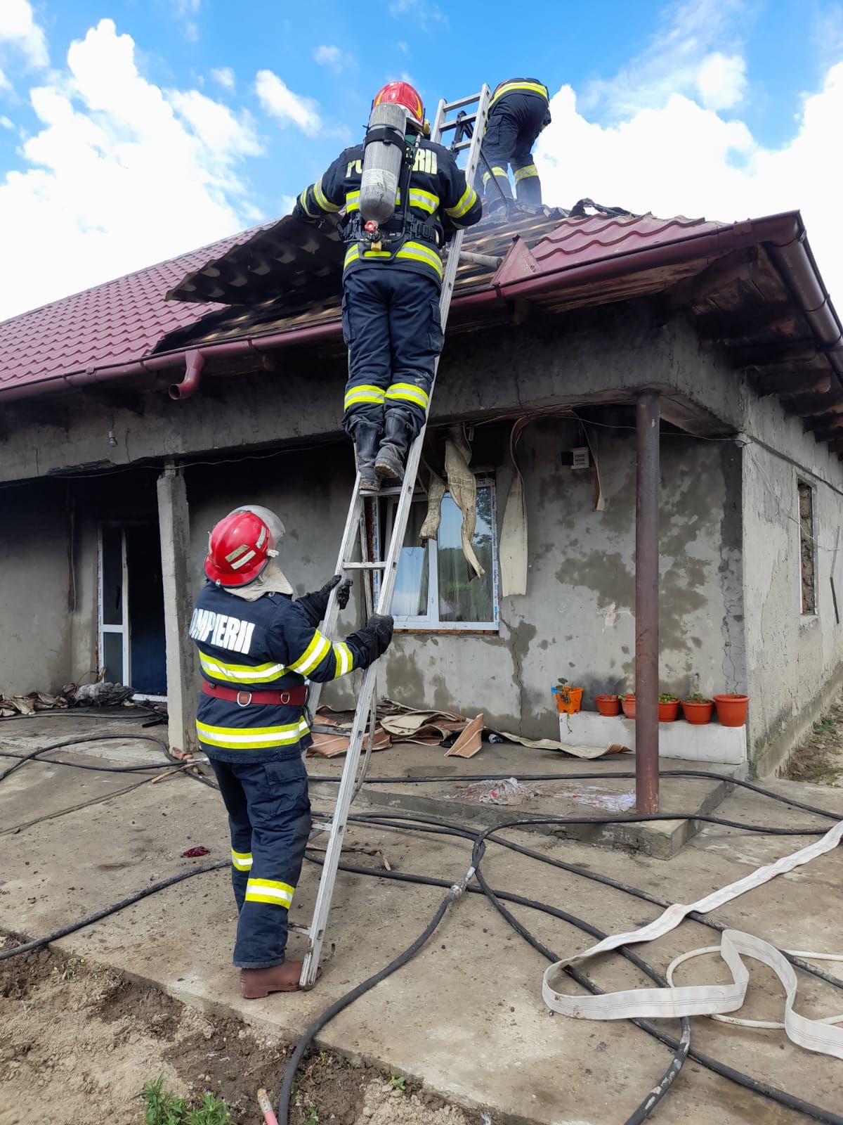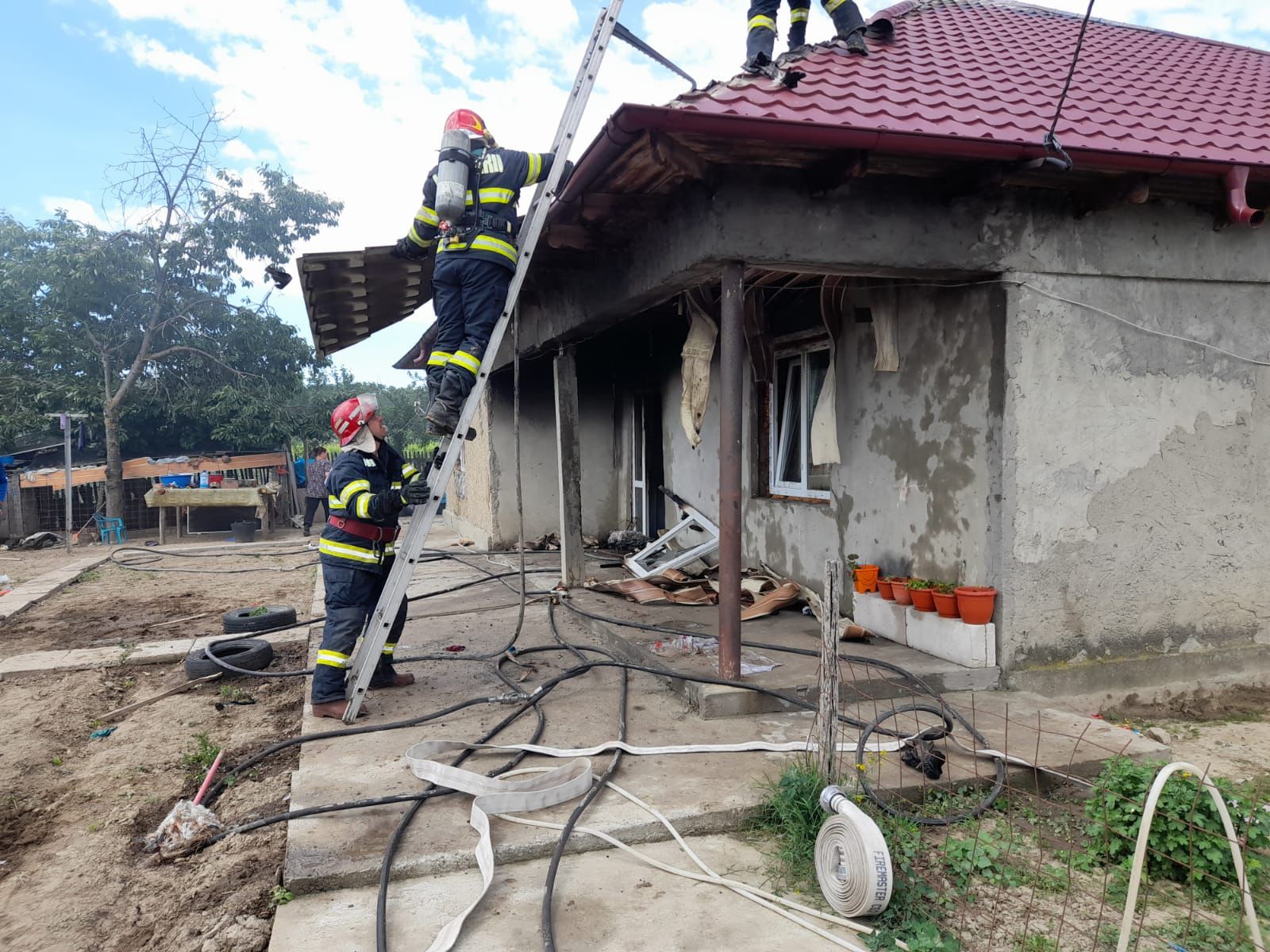 La sosirea echipajelor, flăcările se manifestau generalizat, aproximativ 80 % din locuință fiind cuprinsă de acestea.