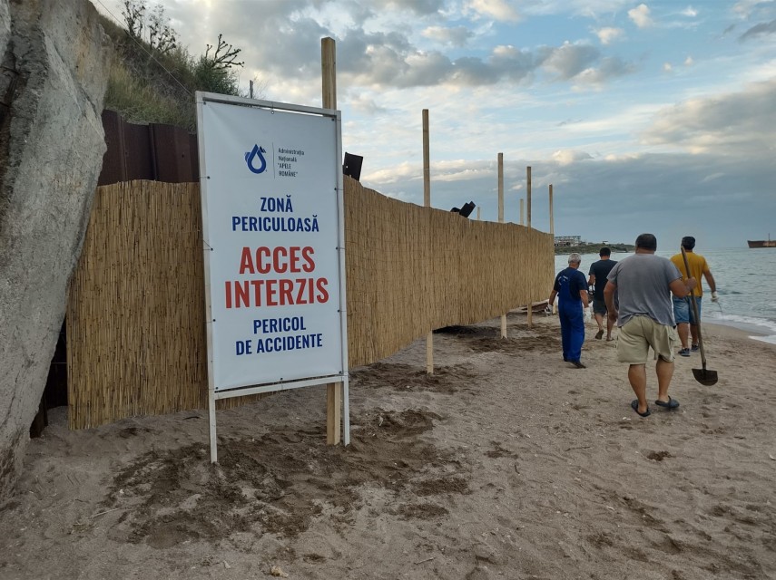 Pentru siguranța turiștilor și localnicilor porțiunea de faleză de la Costinești, puternic erodată, este monitorizată permanent de angajații Administrației Bazinale de Apă Dobrogea Litoral (A.B.A.D.L).