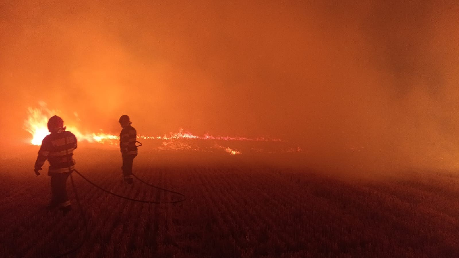 Au ars aproximativ 400 de hectare de miriște și vegetație uscată și 600 baloți de paie.