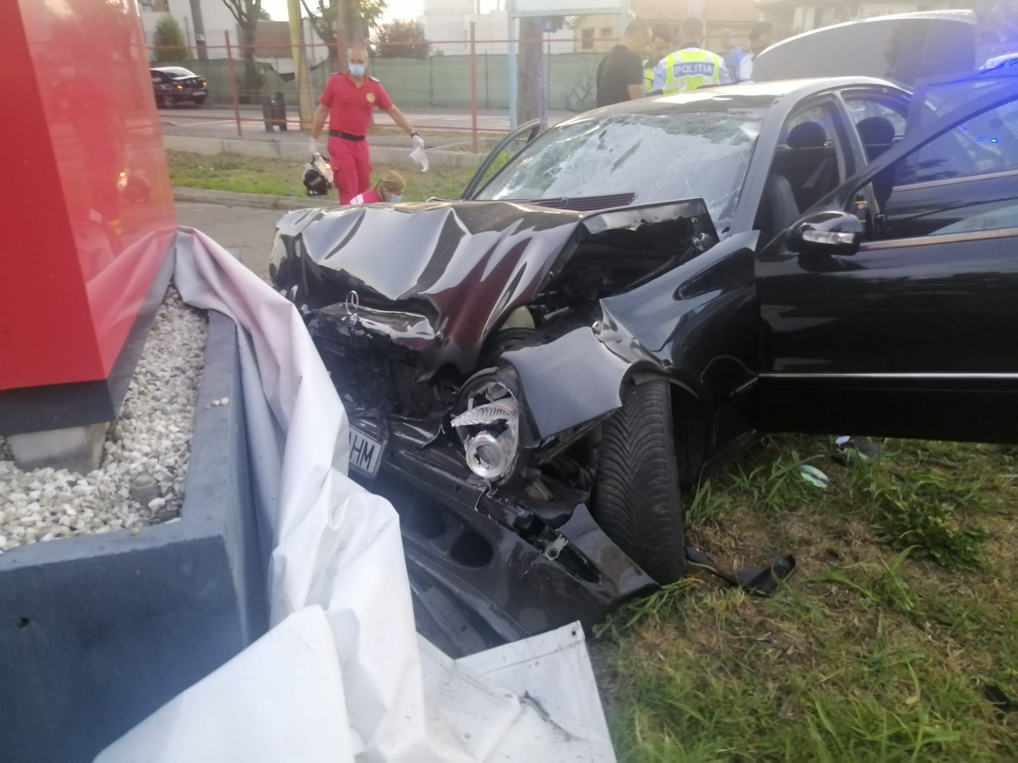 Din primele informaţii, un autoturism, condus de un bărbat, de 62 de ani, ar fi pierdut controlul asupra direcției către dreapta, ar fi pătruns în curtea unei societăți comerciale, unde ar fi intrat în coliziune cu un stâlp de susținere al siglei firmei respective.