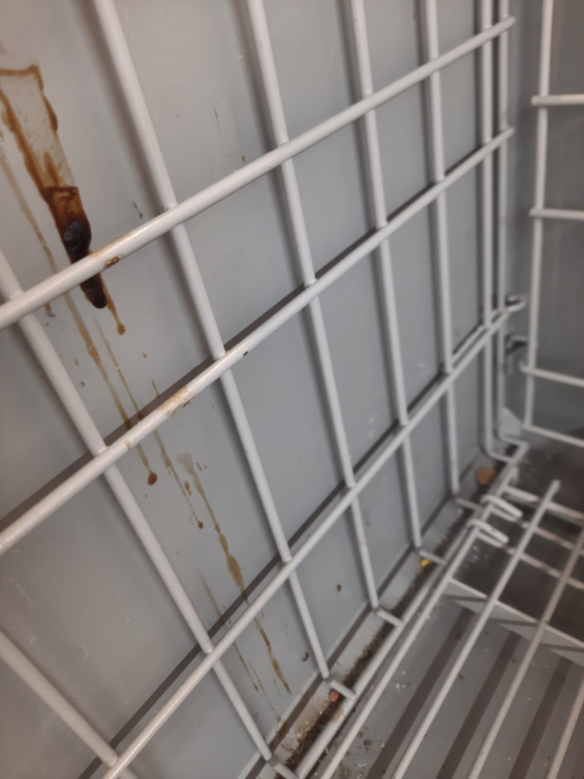 – utilizarea unor vitrine frigorifice neingenizate corespunzător, cu resturi alimentare, acumulări de lichide, urme rugină, vopsea exfoliată