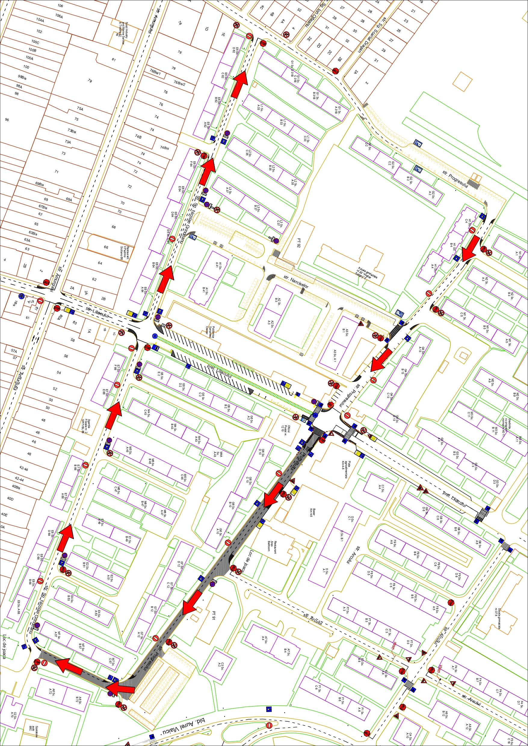 Pe strada Progresului, circulația autoturismelor va fi posibilă dinspre strada Meșterul Manole către strada Sergent Nicolae Grindeanu, iar pe strada Sergent Nicolae Grindeanu, traficul rutier se va desfășura dinspre strada Progresului către strada Meșterul Manole. Ambele sensuri unice sunt în proximitatea Școlii Gimnaziale Nr. 33  „Anghel Saligny”.