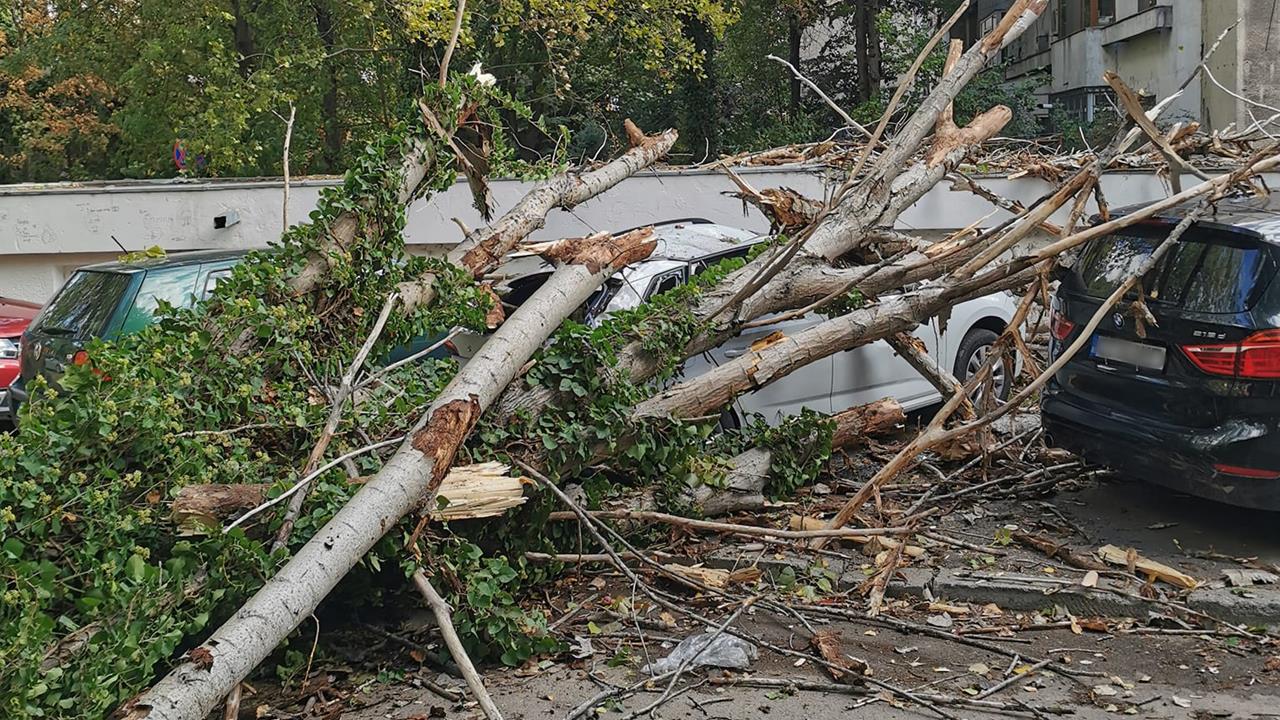 Copacii au căzut și peste mașinile parcate sau pe șosea, iar alții sunt în pericol să cadă, fiind susținuți de cabluri electrice.