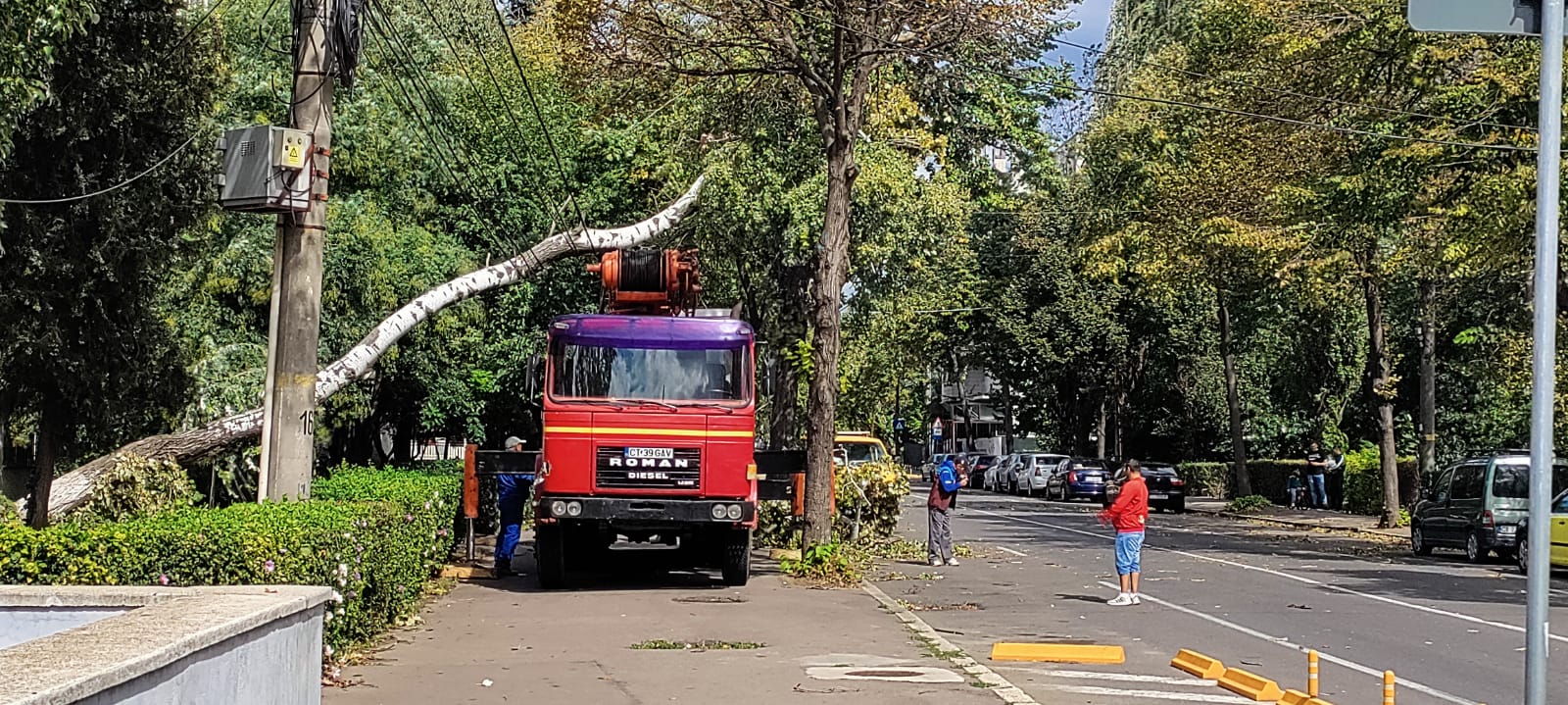 – Un copac stătea să cadă, în Constanța, zona Abator, lângă Oficiul Poștal.