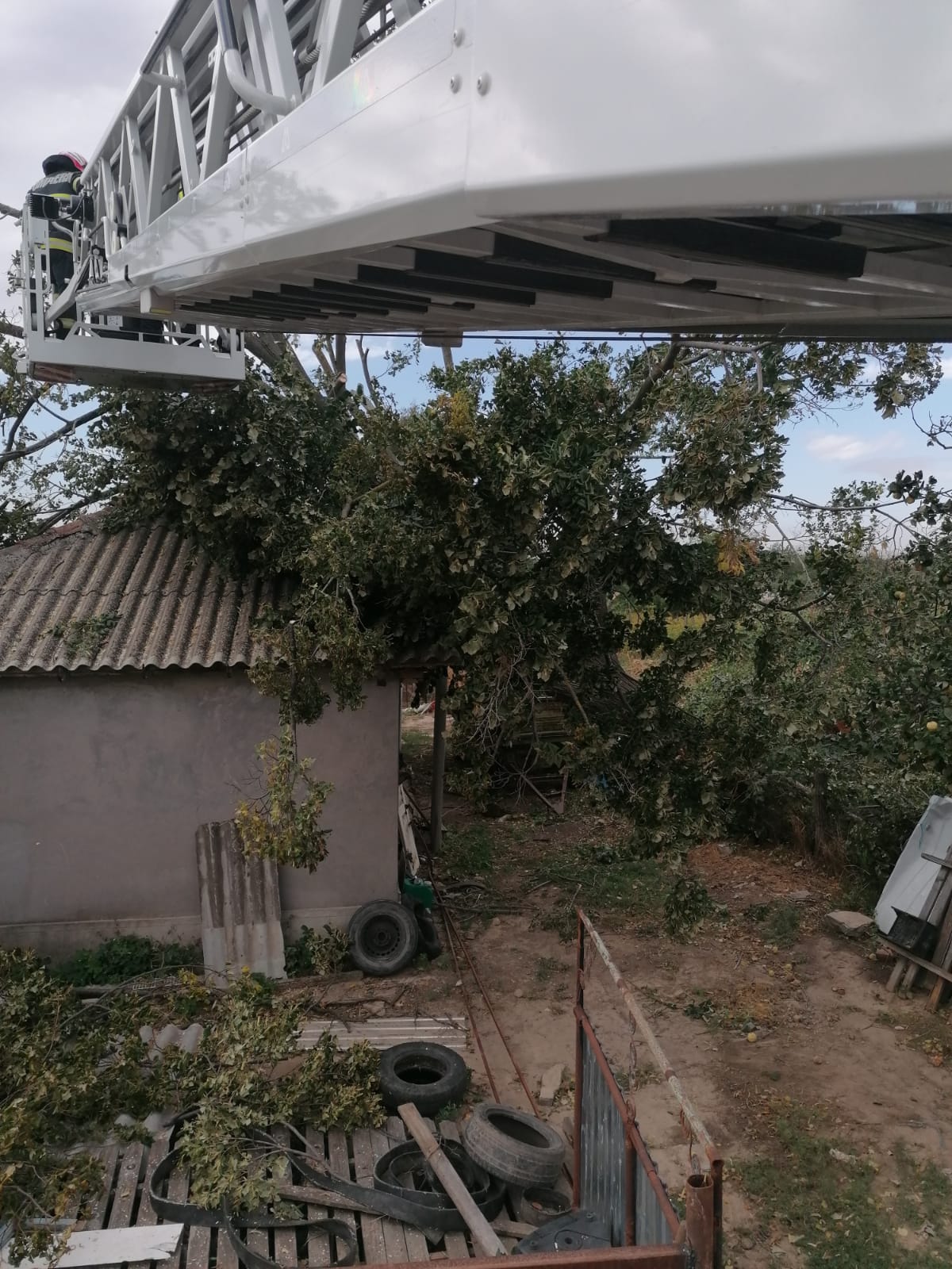 Reprezentanții ISU Delta Tulcea au informat că au intervenit în municipiu și în județ, acolo unde o creangă a căzut peste două mașini, iar un copac s-a prăbușit peste o casă.