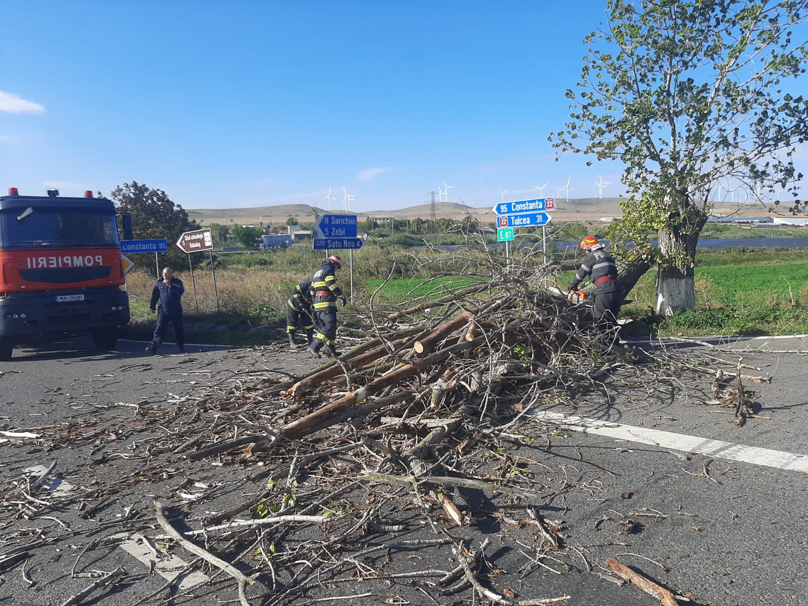 „În urma atenționării de cod galben de vânt emisă de meteorologi, pompierii Inspectoratului pentru Situații de Urgență „Delta” al județului Tulcea au intervenit pentru degajarea unor crengi ori copaci căzuți pe carosabil în județul Tulcea, la intersecția DN 22 cu DJ 229 dar și pe Drumul European E87 în localitatea Mineri. De asemenea, în cursul dimineții un echipaj format din 4 subofițeri au intervenit pentru degajarea unei crengi căzută pe două autoturisme pe Strada Babadag din municipiul Tulcea, iar în jurul prânzului au intervenit cu o autoscară în localitatea Valea Nucarilor pentru a îndepărta un copac căzut peste o casă afectând aproximativ 5 mp din acoperiș. În niciuna din situații nu au fost înregistrate victime”.