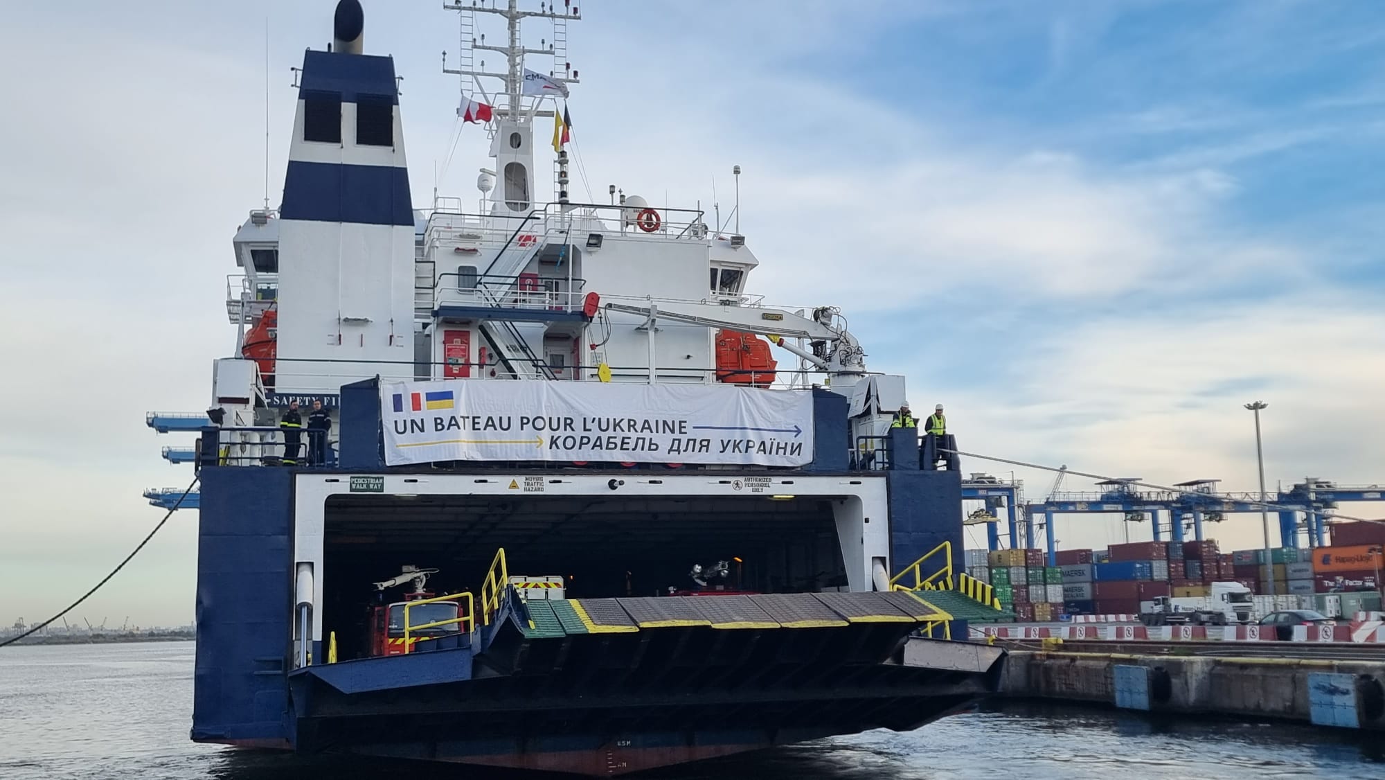 Această operaţiune, denumită „Un bateau pour l’Ukraine / O navă pentru Ucraina“, este coordonată de Centrul de criză și sprijin al Ministerului francez pentru Europa și Afaceri Externe. Acest transport maritim fără precedent este realizat cu sprijinul Fundației CMA CGM, care a pus la dispoziție pentru această operaţiune nava sa „Aknoul”.