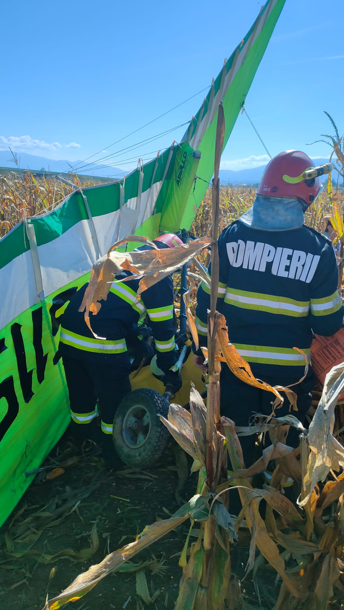 „Cele două persoane de sex masculin care se aflau în motodeltaplanul care s-a prăbuşit au primit îngrijiri medicale la faţa locului şi sunt transportate la UPU Sibiu de către echipajele SMURD”, a spus Andreea Ştefan.