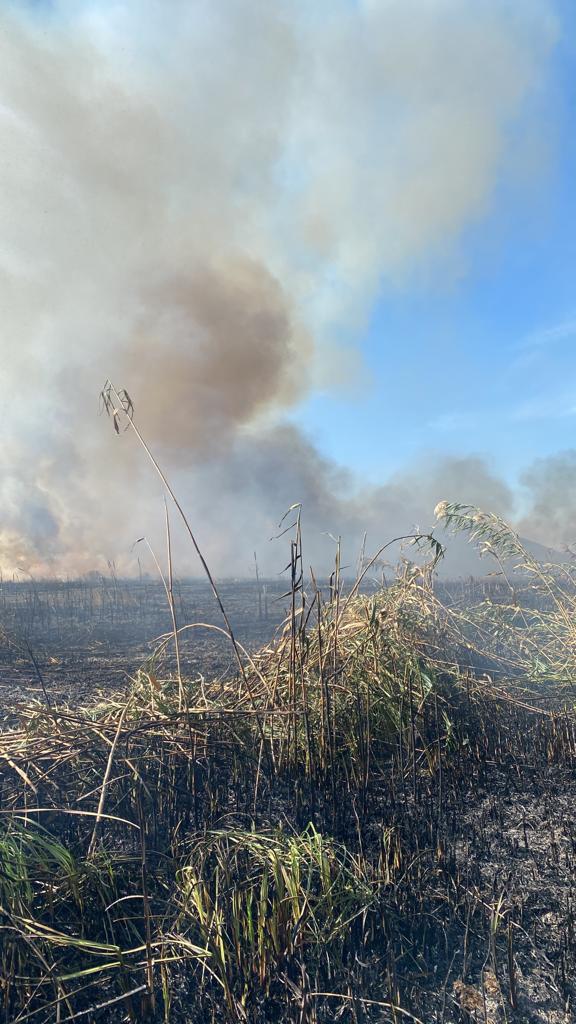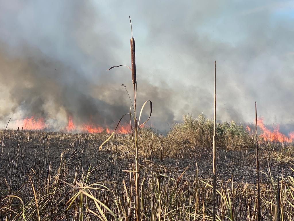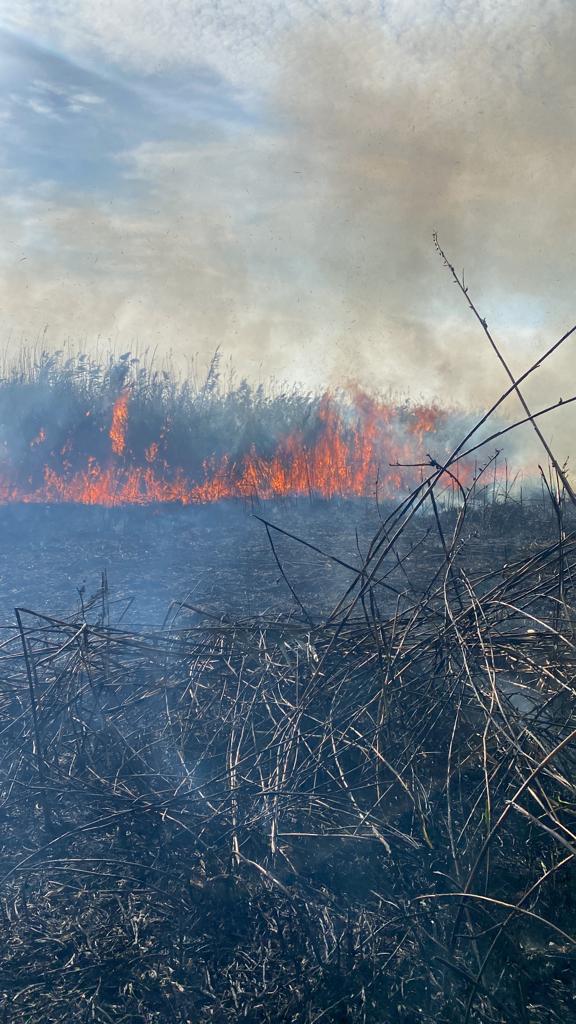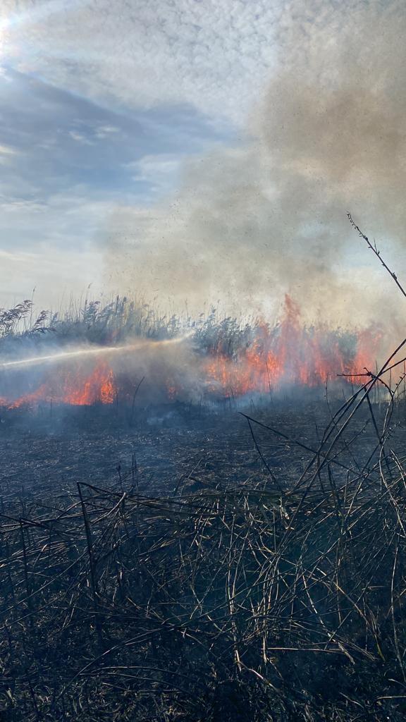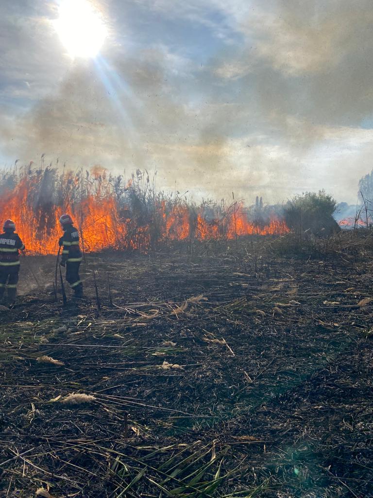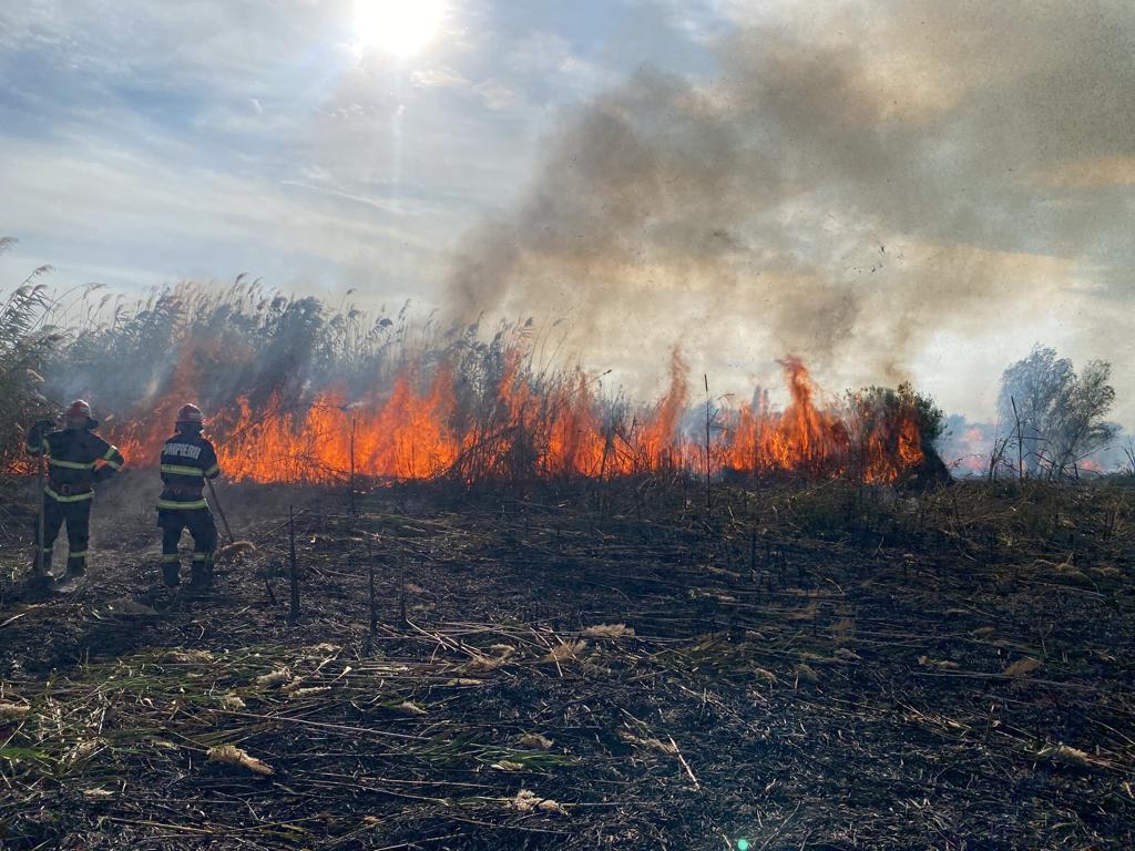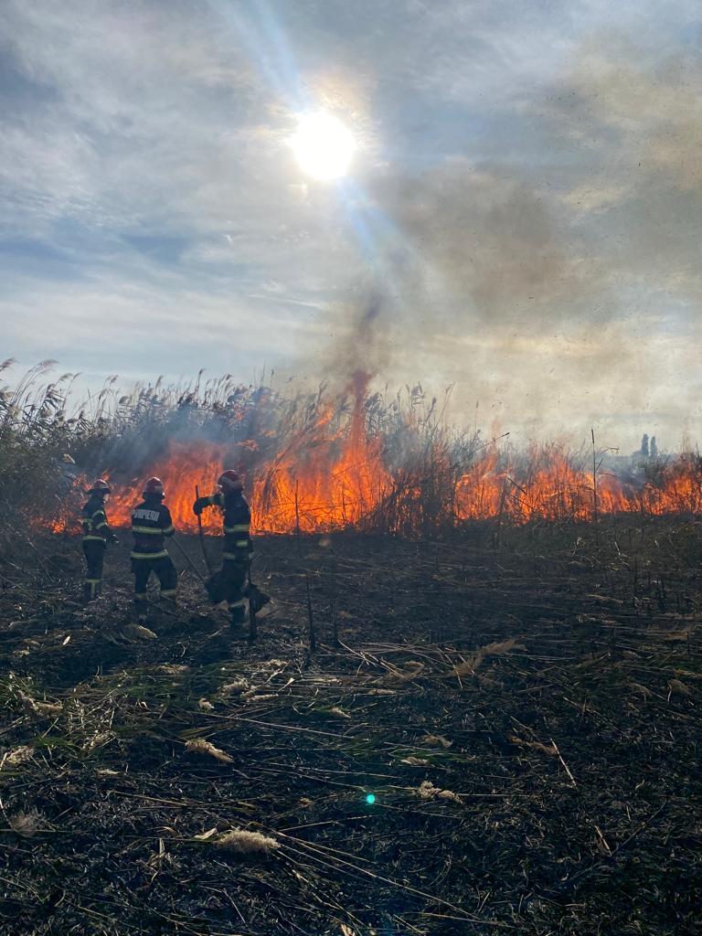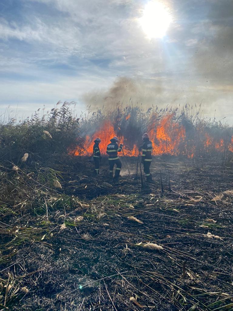 JURILOVCA: Aproximativ 10 ha de vegetaţie stuficolă a luat foc. Intervin pompierii staţiei Babadag – FOTO