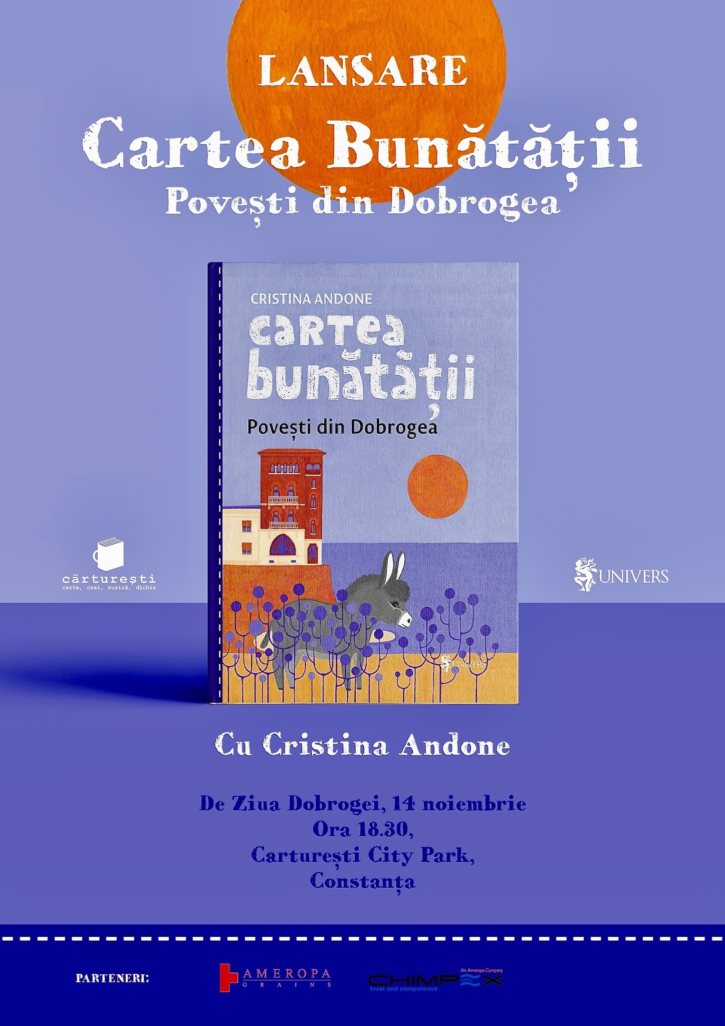 Chiar de Ziua Dobrogei, luni, 14 noiembrie, ora 18, la Constanța va avea loc o lansare de poveste. La editura Univers, în colecția Unicorn, “iese în lume” cel de-al treilea volum din colecția ”Cartea bunătății”: Povești din Dobrogea.