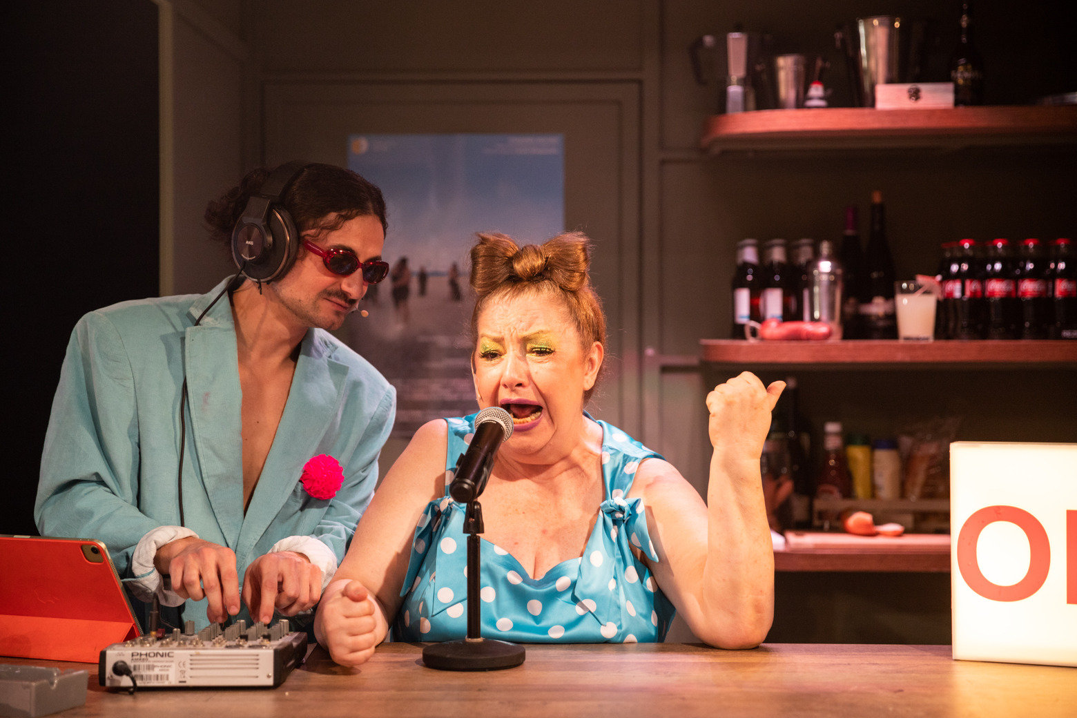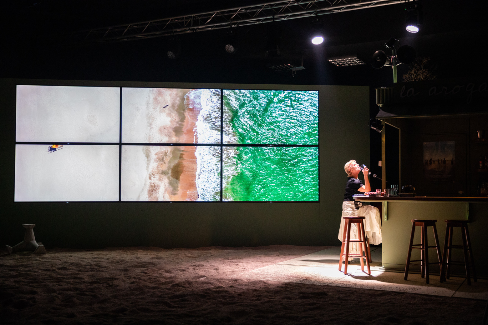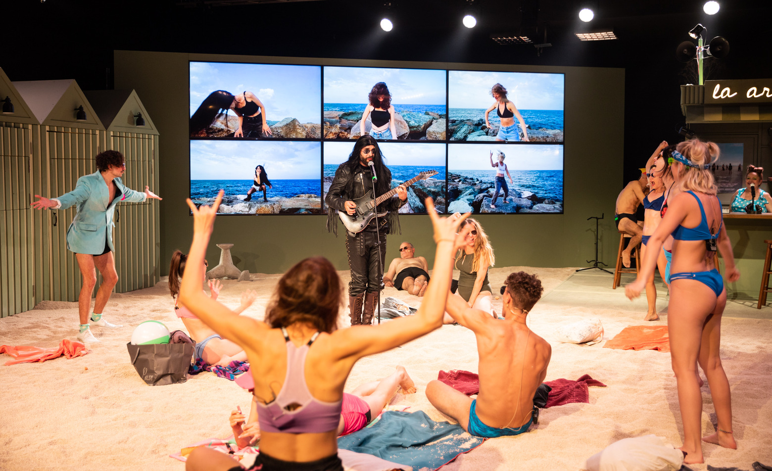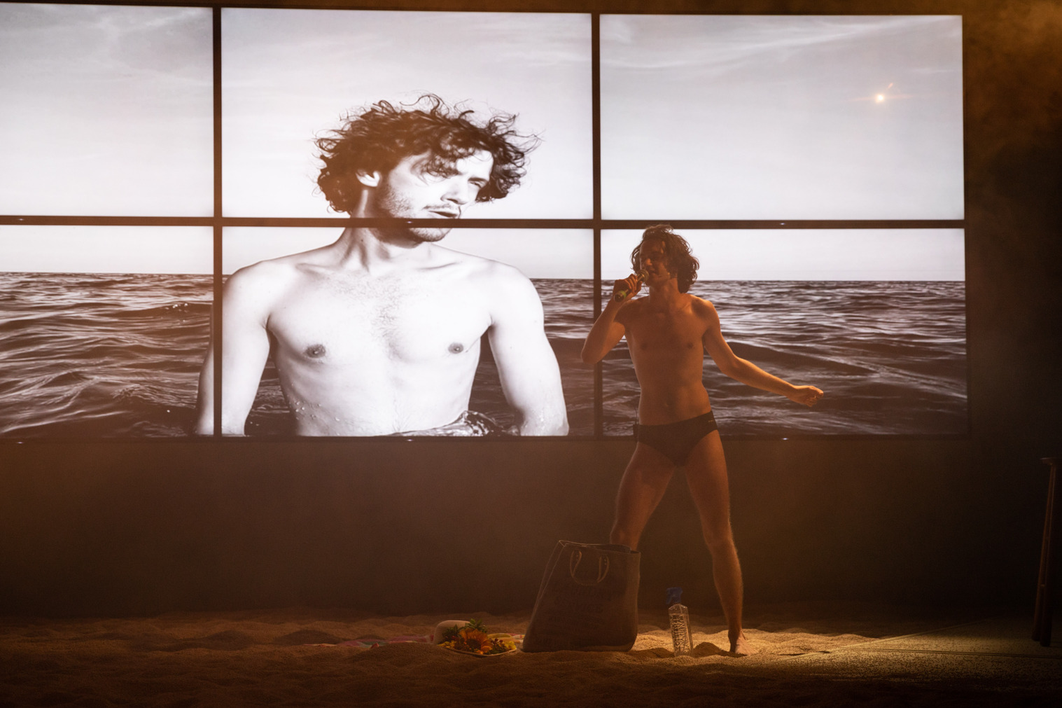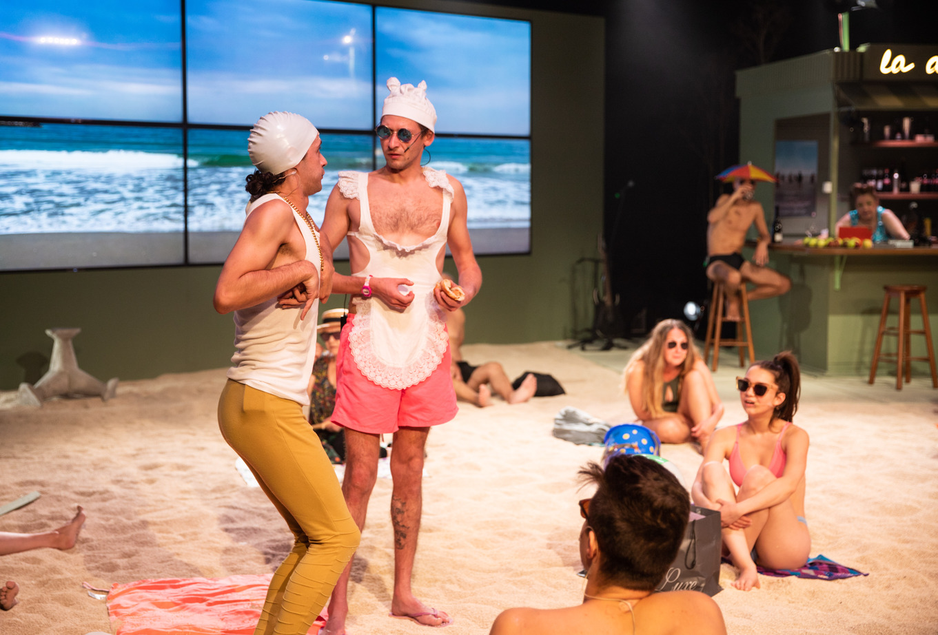 Scenograful a câștigat pariul de a aduce marea pe scenă, transformând-o într-un personaj omniprezent. Costumele și decorul evocă întru totul spațiul estival. Cabinele, așezate discret pe o latură a scenei, reprezintă locul prin care personajele intră și ies din scenă sau devin „rame“ pentru anumite tablouri.”