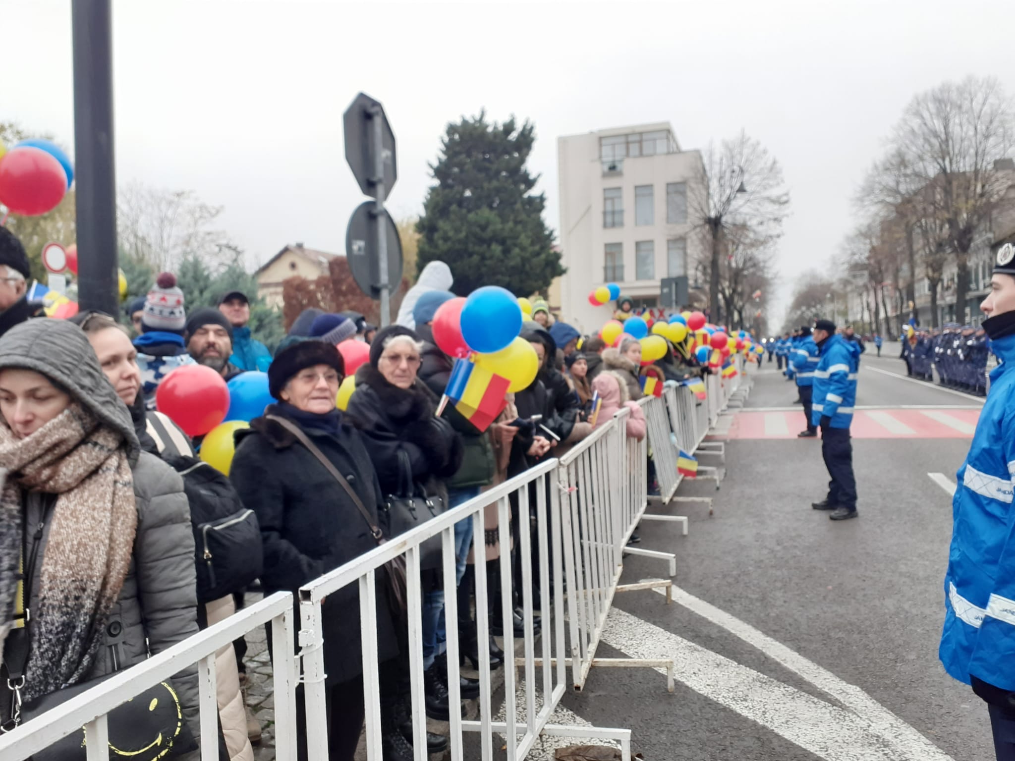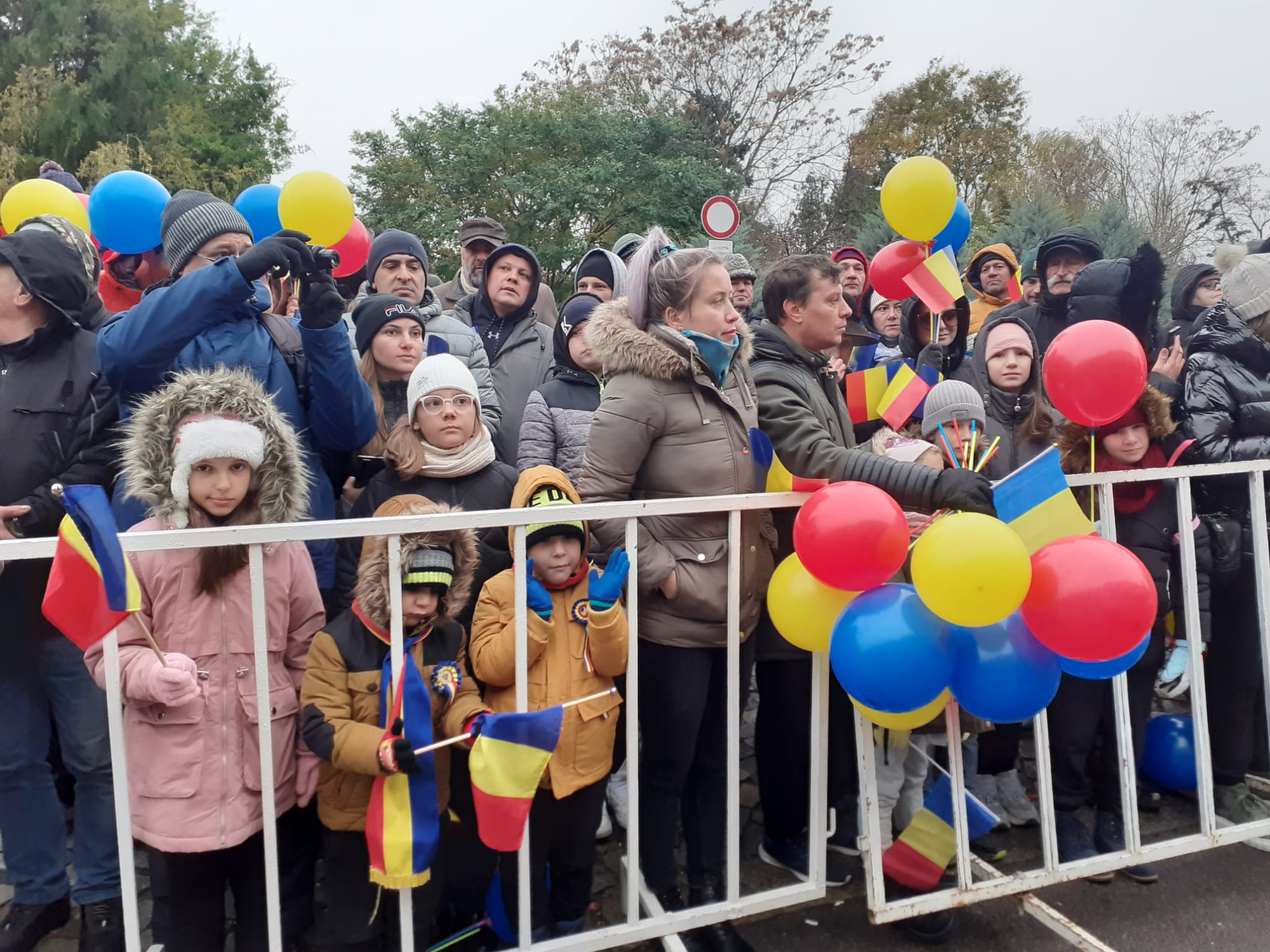 Sunt oameni de toate vârstele, foarte mulți părinți cu copii. Au baloane tricolore sau steaguri și au venit să îî vadă pe cei aproape 500 de militari și specialiști, dar mai ales tehnica si echipamentele militare. Deși plouă și bate vântul, programul paradei este respectat.