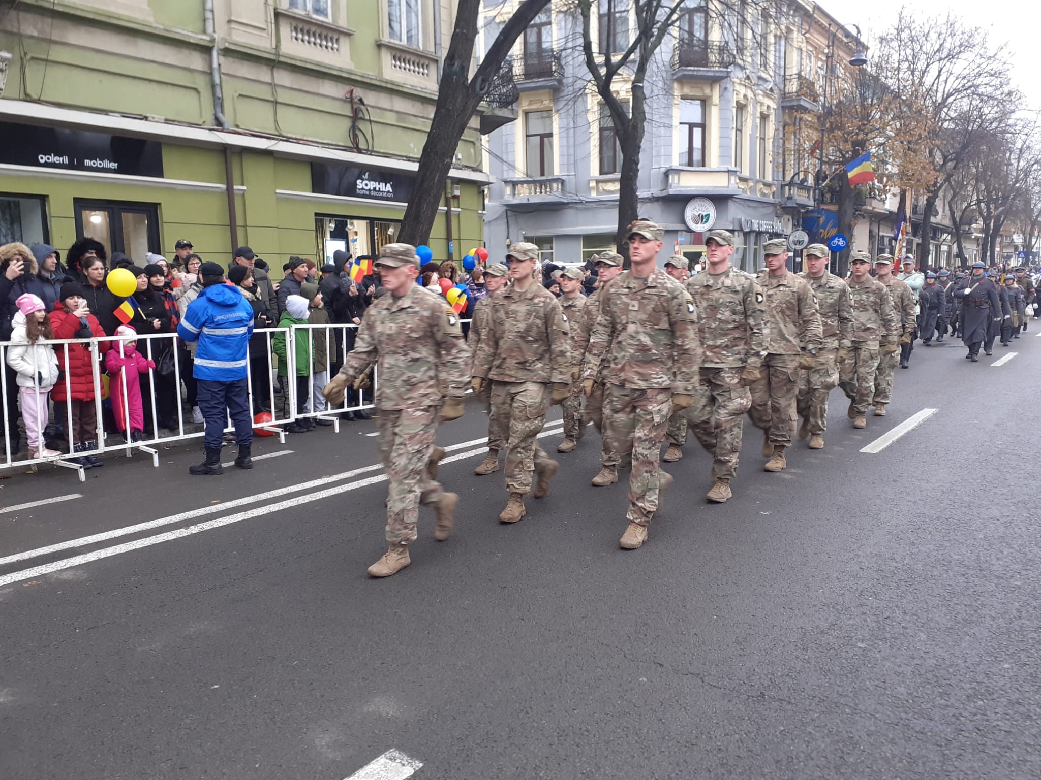 În ciuda vremii deloc prietenoase, sute de constănțeni au venit sa asiste la parada militară, de la ora 11, pe bulevardul Tomis.