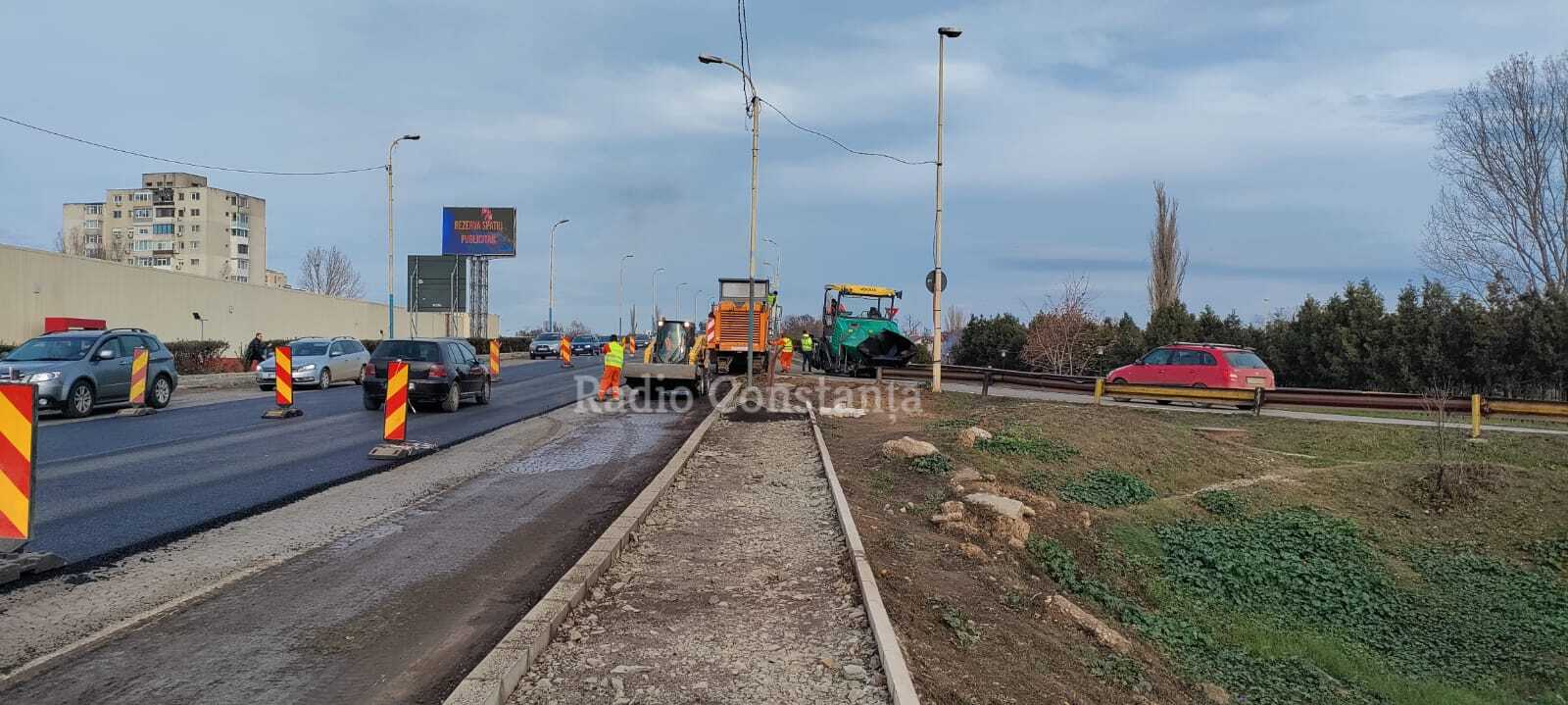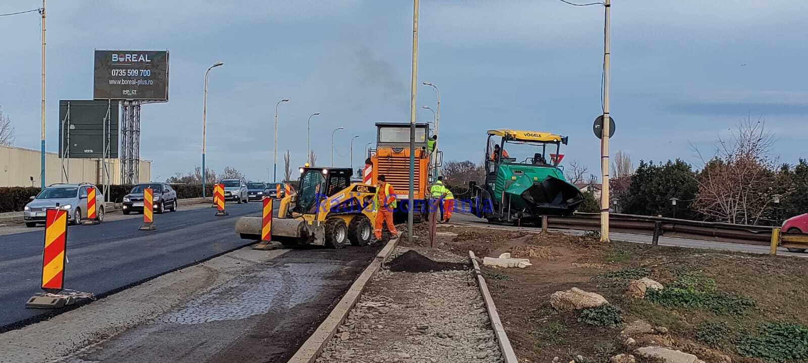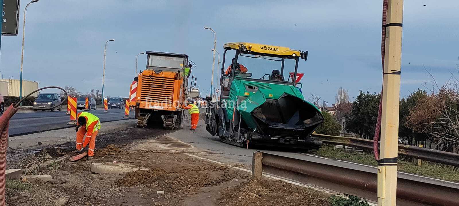Duminică, echipe de muncitori au reluat lucrările de asfaltare pe podul din zona Doraly.