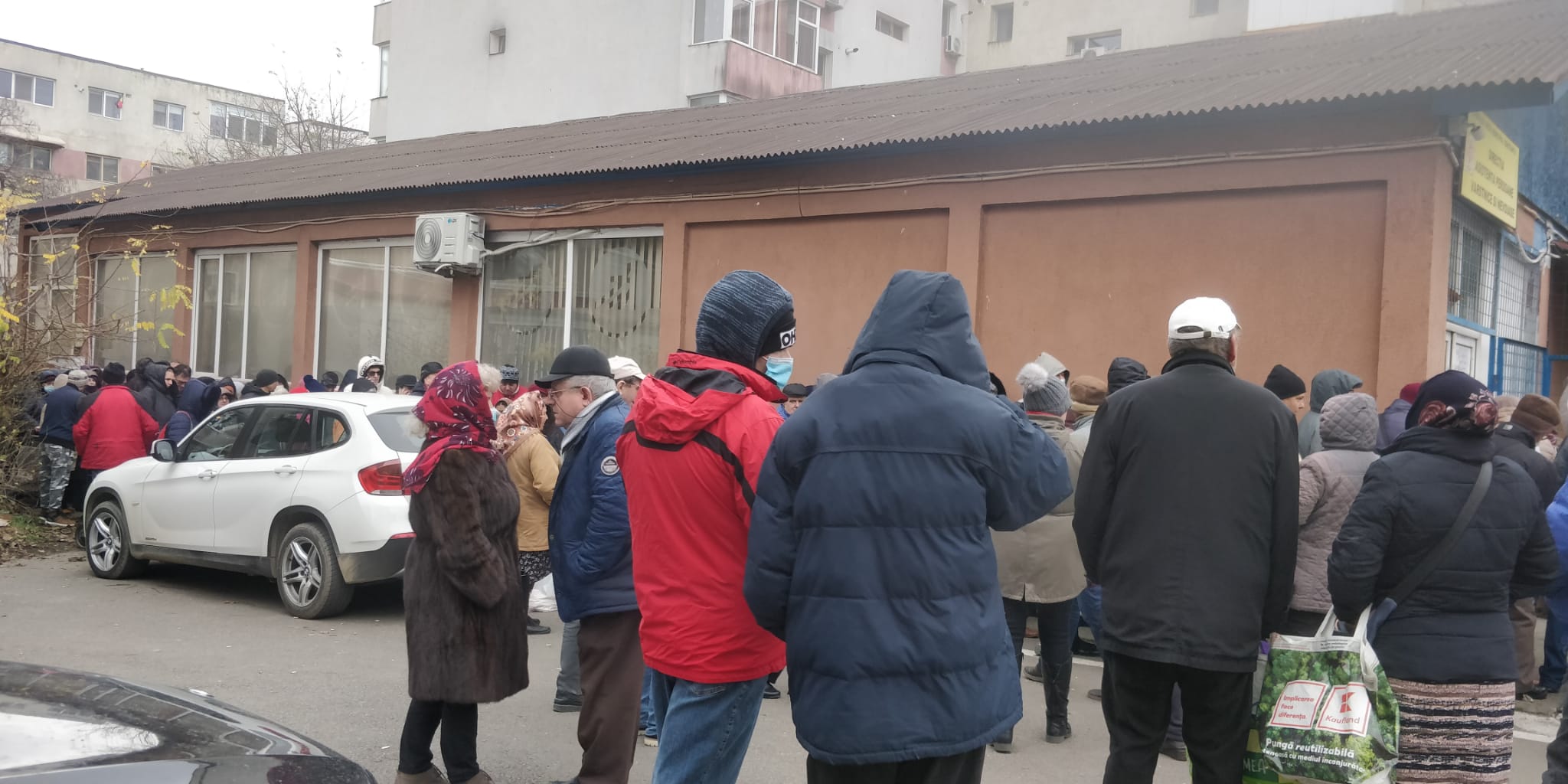 Pachetele au fost distribuite în ultimele zile în Piața Tomis III, pe principiul primul venit, primul servit, de unde și aglomerația creată.