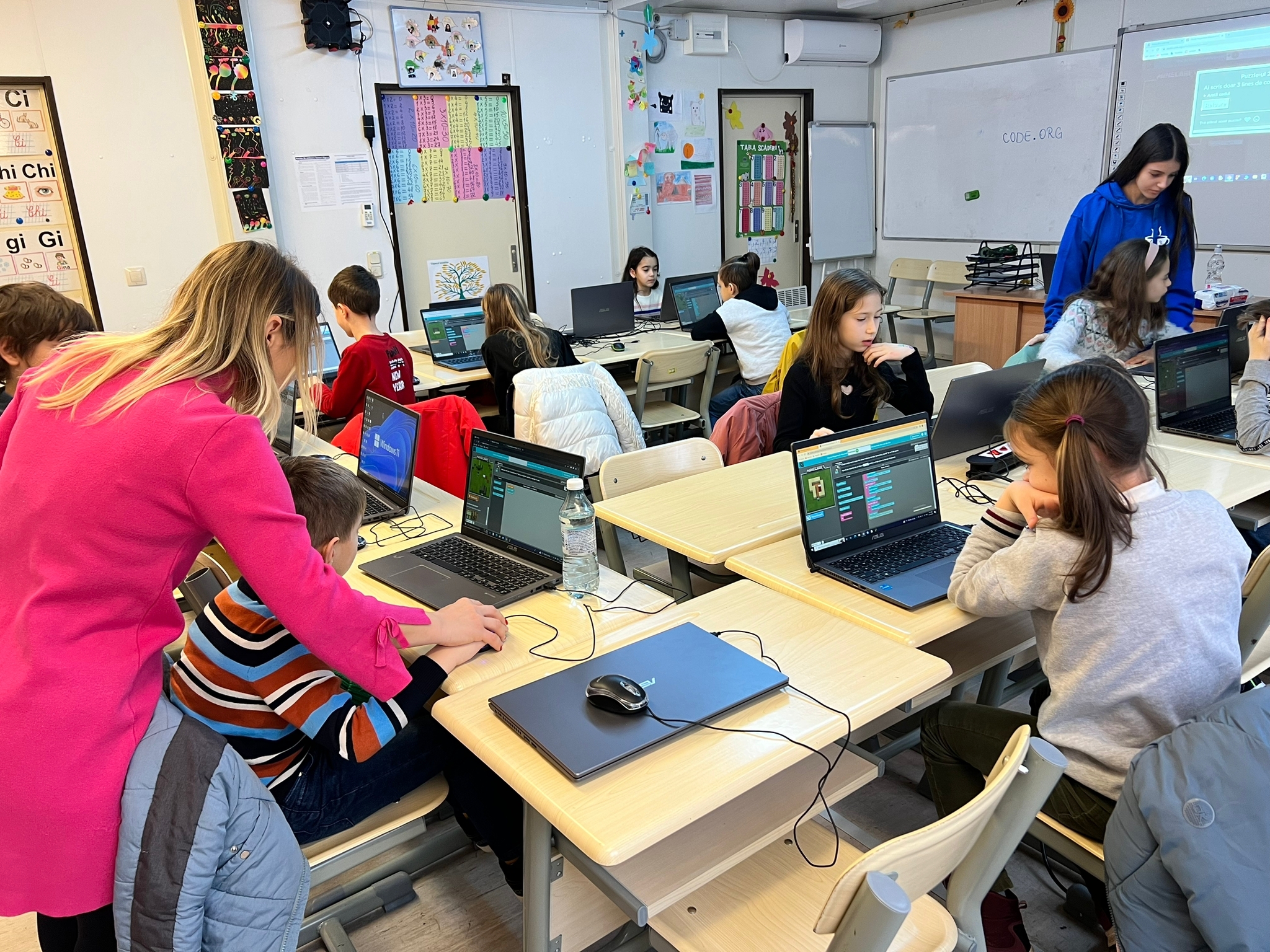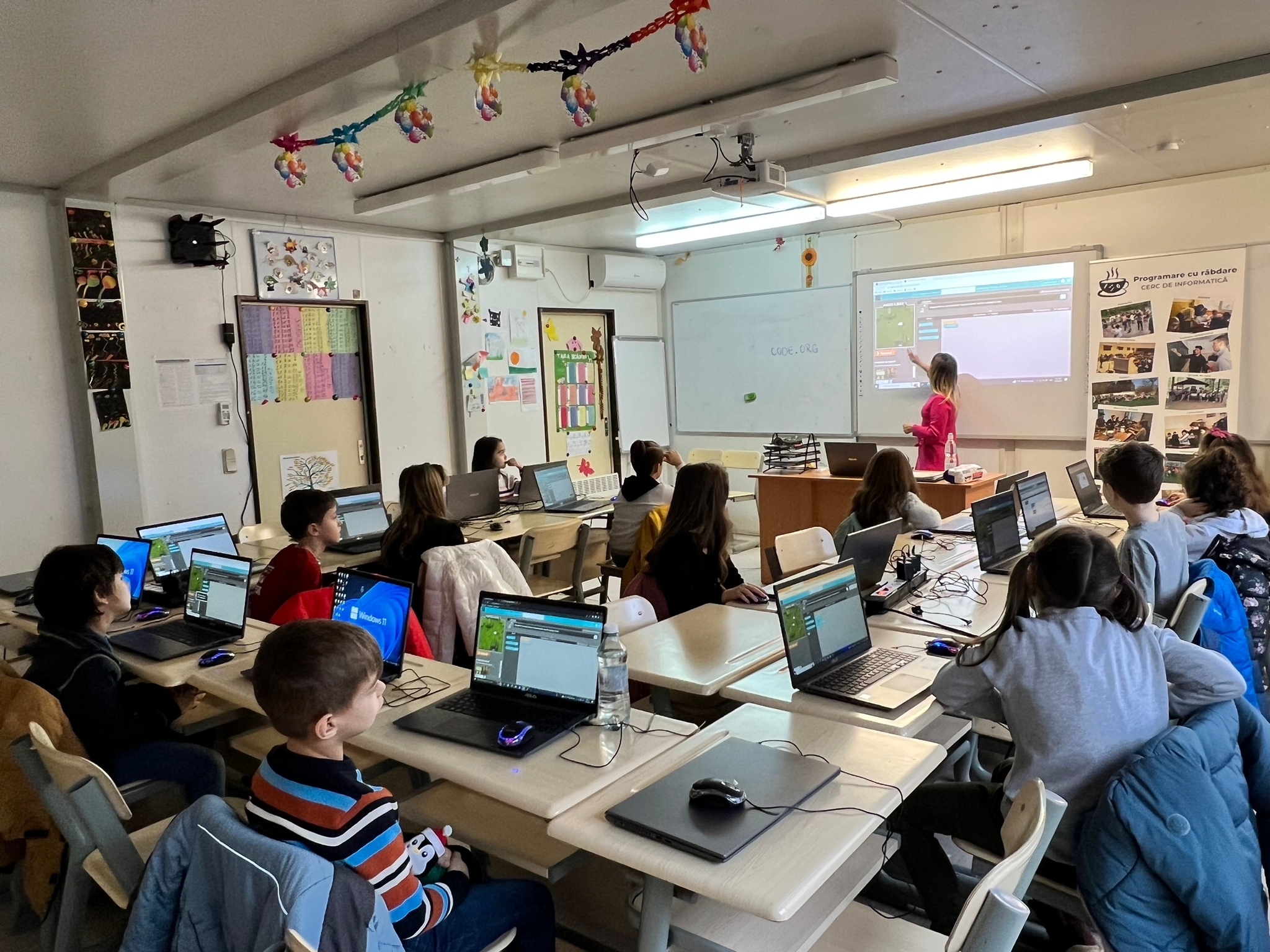 Elevii au fost încântați de notiunile învățate și de atmosfera relaxantă de lucru. Copiii din ciclul primar au învățat bazele programarii folosind programul “Hour of Code”, iar elevii de gimnaziu au fost inițiați în programarea Python.