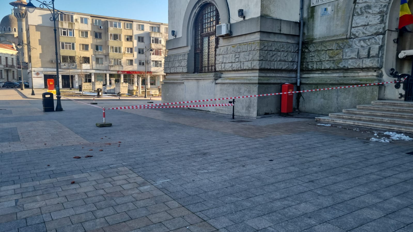 Pericol în zona Piațetei Ovidiu din centrul vechi al Constanței. Cad țigle de pe acoperișul Muzeului de Istorie Națională și Arheologie Constanța.
