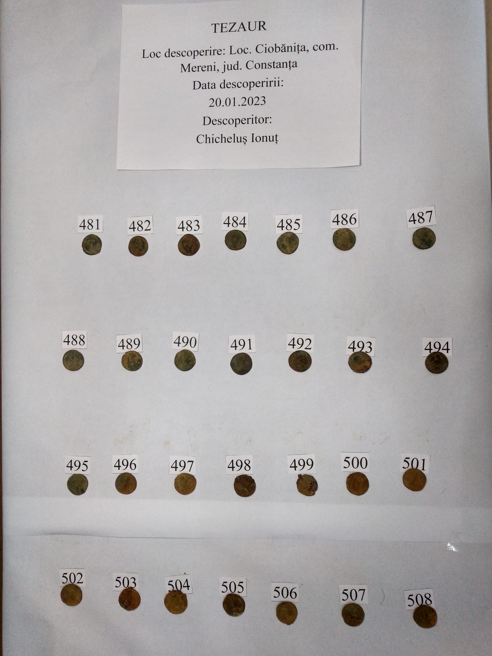 Povestea acestui Tezaur a început pe data de 20 ianuarie 2023, pe raza localității Ciobănița, comuna Mereni, județul Constanța. Cu ajutorul unui detector de metale, un grup de trei persoane a descoperit un tezaur monetar depus într-un vas ceramic. Așa cum se impune în astfel de cazuri, persoanele în cauză au solicitat imediat sprijinul autorităților abilitate iar la fața locului s-au deplasat imediat doi dintre specialiștii MINAC, care au preluat artefactul, acesta ajungând temporar în custodia muzeului din Constanța.