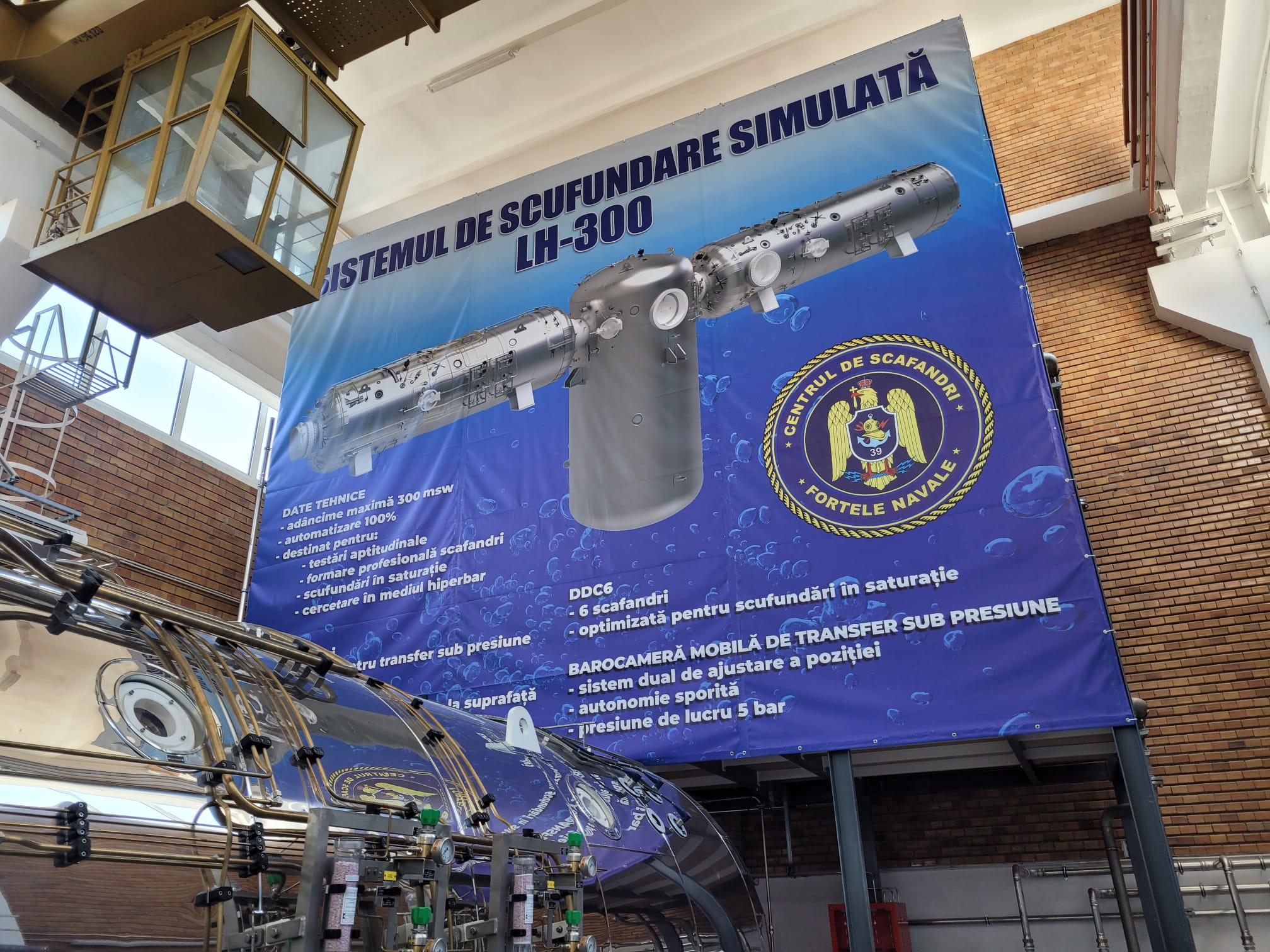 Noul Sistem de Scufundare Simulată LH-300, care a intrat în dotarea Centrului de Scafandri la finele anului trecut, își începe oficial activitatea. Acesta are o capacitate totală de 18 locuri pentru pregătirea scafandrilor, permite scufundări până la adâncimi de 300 de metri și dispune de facilități pentru tratarea victimelor unor accidente de scufundare.