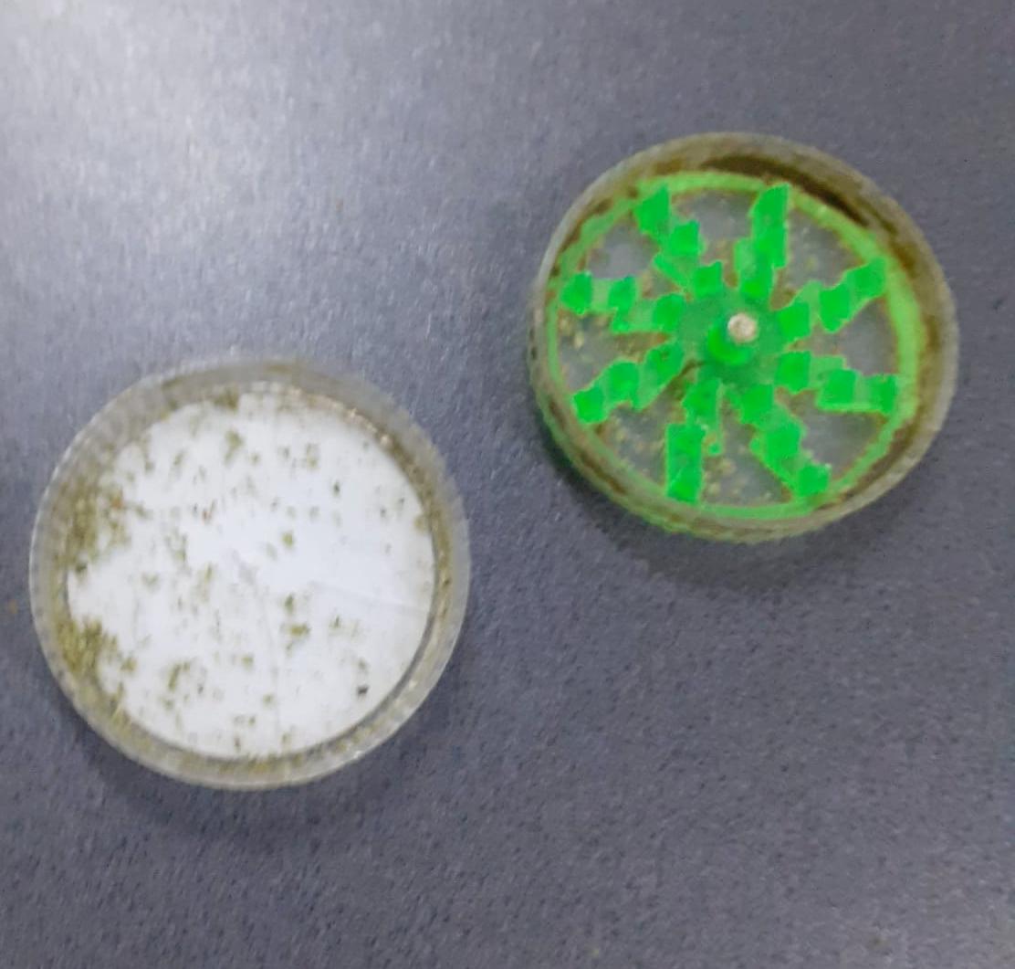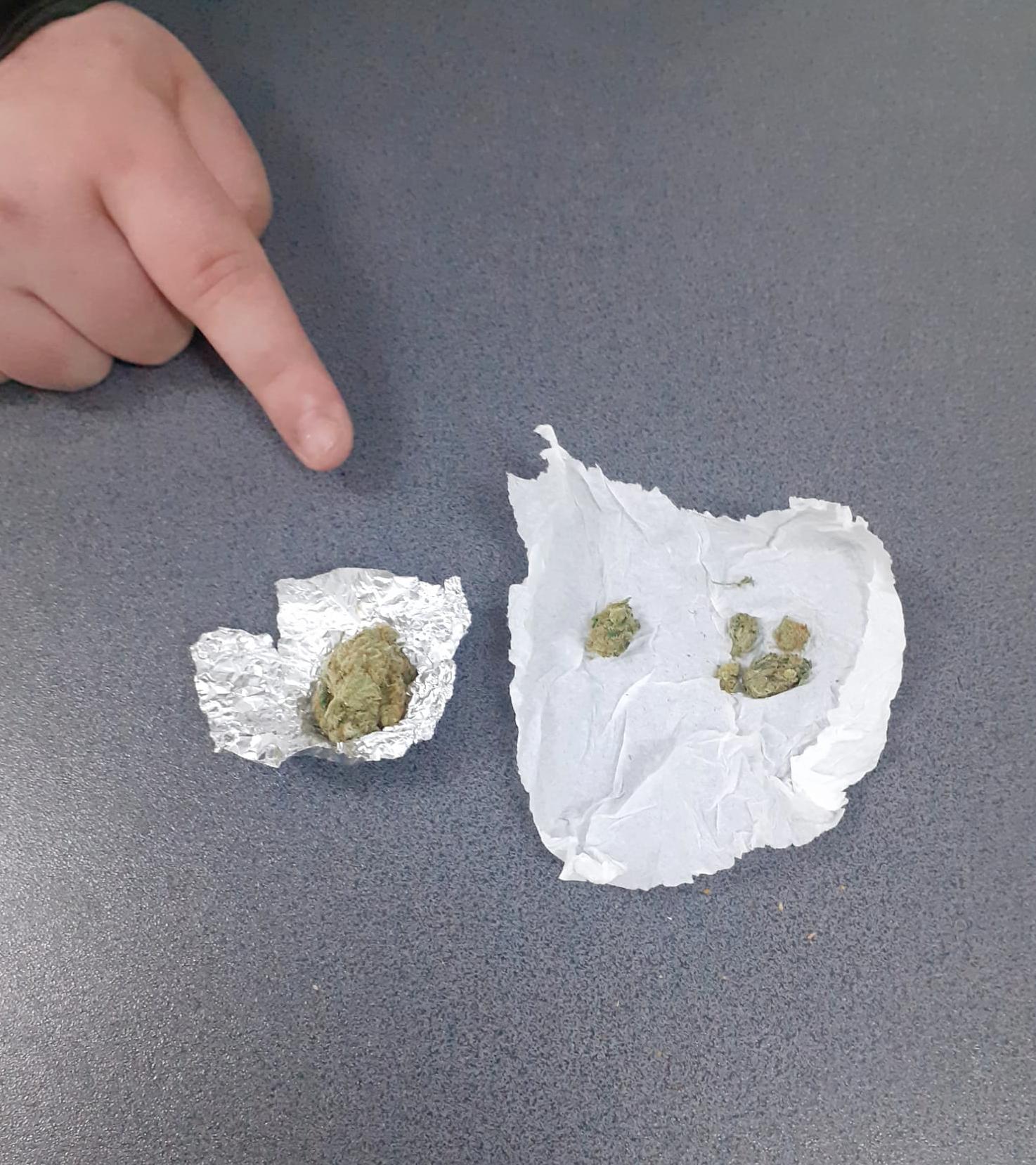 În urma verificărilor, au fost găsite două bile ce conțineau materie vegetală uscată de culoare verde, susceptibilă a avea efect psihoactiv/psihotrop, un grinder pentru mărunțirea acestei materii vegetale, filtre și hârtie pentru fabricarea țigărilor.