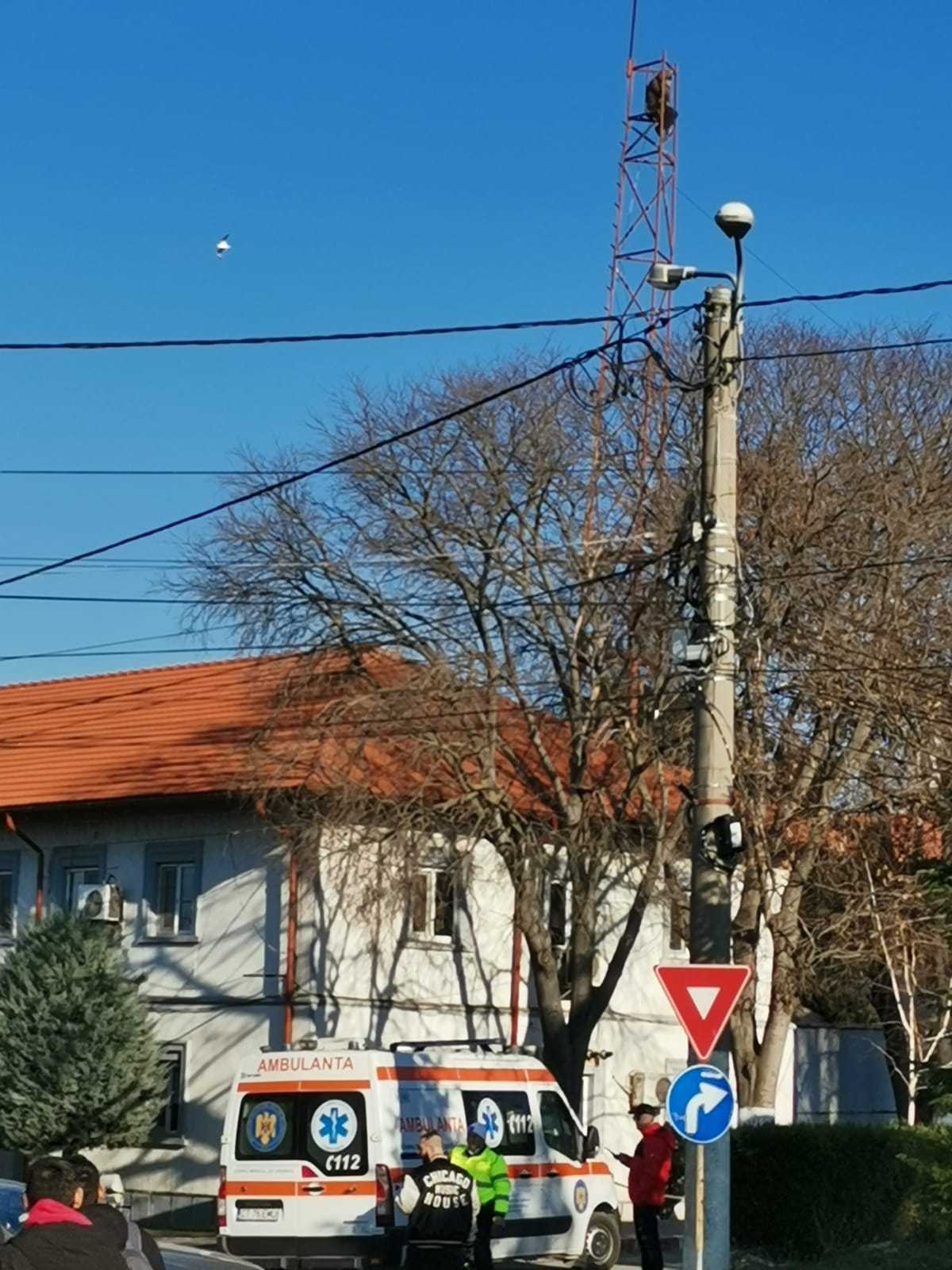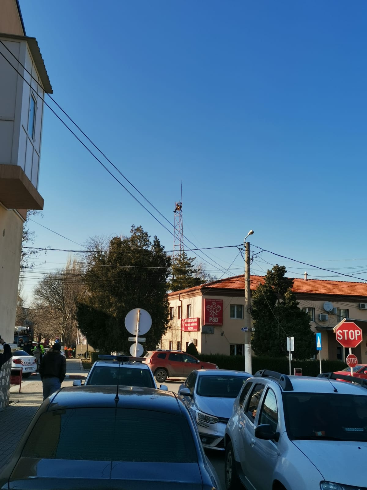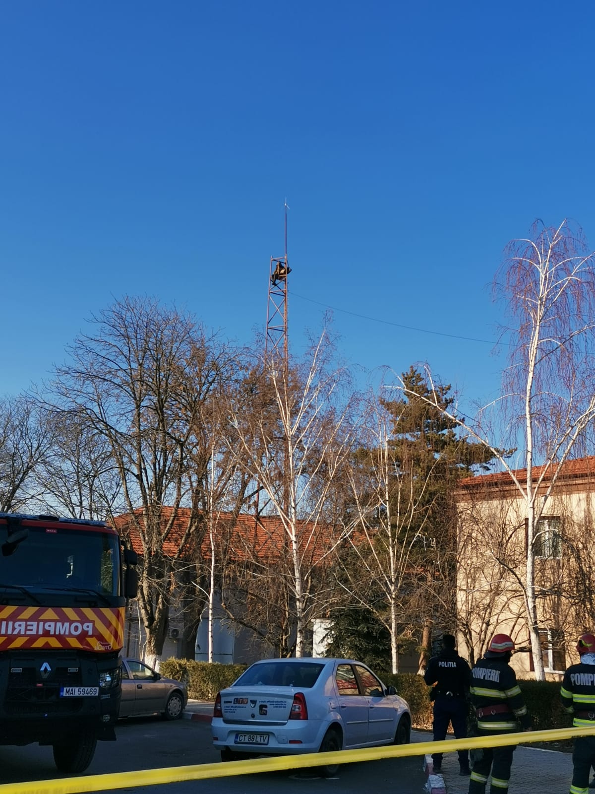În aceste momente pompierii şi Poliţia intervin la Năvodari, lângă Primăria din oraş, în cazul unui bărbat care s-a urcat pe un stâlp şi ameninţă că se aruncă.