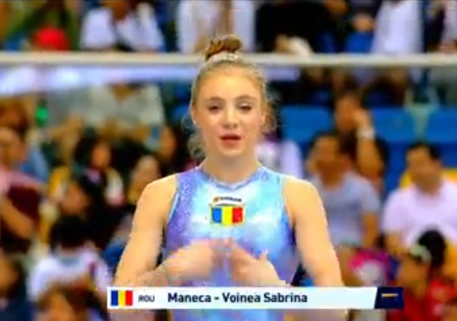 ”La 15 ani, Sabrina Voinea este revelația Cupei Mondiale de la Doha. Campioana europeană de junioare a dublat aurul la bârnă cu medalia de aur la sol. Cea mai mare dificultate (5.7), al doilea punctaj la execuţie (7.900) şi un total,13.600 cu care a Sabrina a câștigat detașat ultima finala a gimnastelor la cea de-a 15-a ediţie a concursului din Qatar. Sabrina, care este antrenată la lotul naţional de la București de Camelia Voinea și Cristi Moldovan, face parte din programul Ţară, ţară, vrem campioane!, coordonat de Mariana Bitang și de Octavian Bellu” – a transmis Federația Română de Gimnastică, pe pagina de Facebook.
