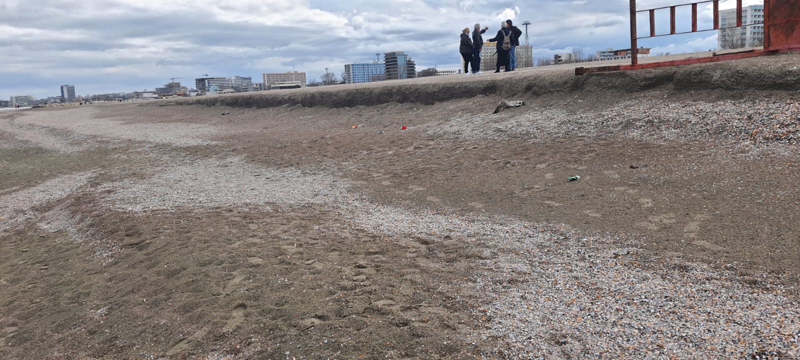 Constănțenii ieșiți la plimbare pe plajă au avut parte de imagini dezolante. Mulți dintre ei se plâng atât de gunoaiele existente, cât și de  faptul că pe plajă s-au format dâmburi de peste un metru, deoarece marea „a săpat” în locurile înnisipate în ultimii ani.