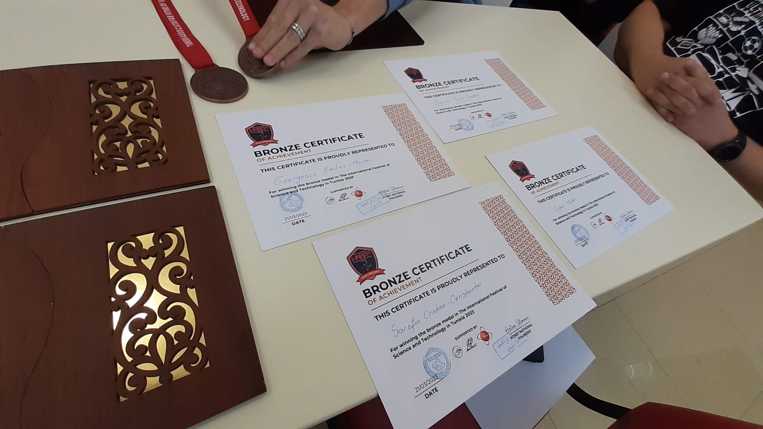 De această dată, au participat la Festivalul Internațional al Științei și Tehnologiei Ingineriei din Tunisia și s-au întors cu două medalii de bronz pentru două proiecte: „Control de la distanță prin inteligență artificială”, autori: Cristian-Constantin Sarofin, Matei Lipan, Emilian-Marian Georgescu, coordonator prof. Laurențiu Bulgaru și „Observarea meteorilor la Carmen Sylva”, autor Irina Teodora Joavina, coordonator prof. Florin Șerbu. După revenirea în țară au povestit despre experiența lor, Lilianei Fustanela, în materialul următor: