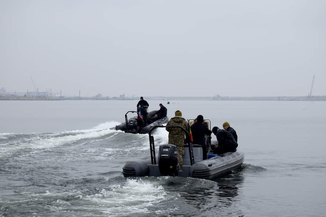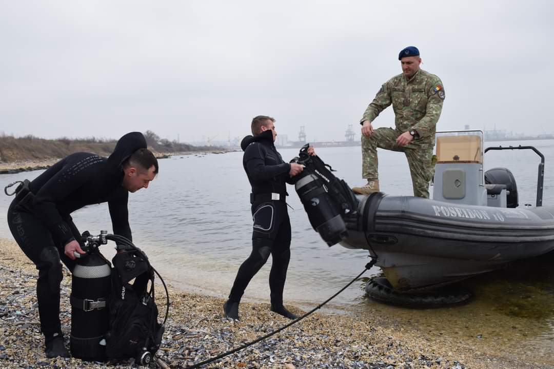 Scafandrii de luptă EOD ai Forțelor Navale Române au desfășurat antrenamente de distrugere a unor dispozitive explozive, care pun în pericol siguranța navigației pe pasa de intrare în portul Constanța, conform scenariului fictiv al Exercițiului multinațional „Sea Shield 2023”, organizat și condus de Forțele Navale Române.