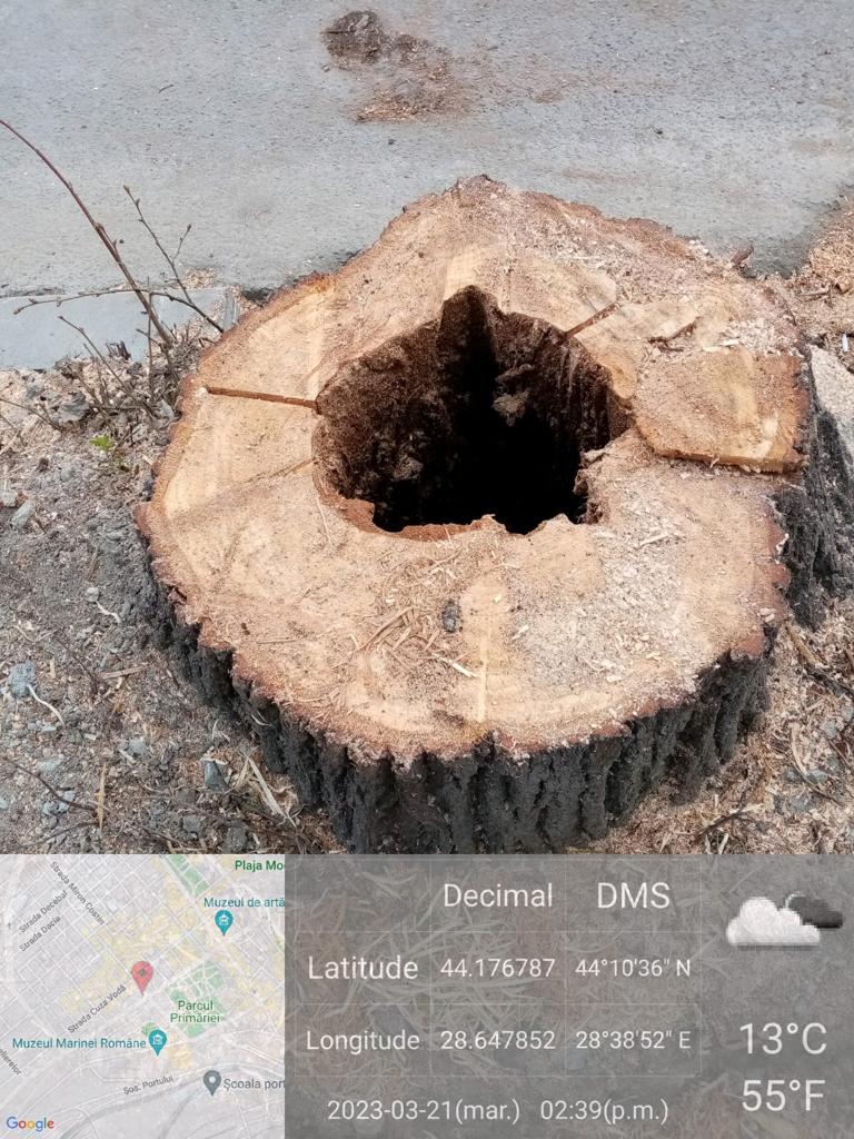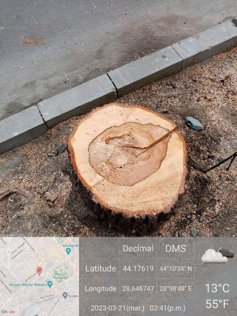 ‘Din documentele analizate a reieşit faptul că, în cadrul proiectului ‘Acces şi mobilitate pietonală în zona centrală a Municipiului Constanţa’, s-au realizat lucrări de corecţie a rădăcinilor copacilor, ceea ce a condus la dezechilibre în viaţa arborilor, cu risc major de prăbuşire prin modificarea centrului de greutate. Astfel, din totalul de 232 arbori predominant din specia tei, 104 au fost inventariaţi de primărie cu potenţial pericol de prăbuşire, din care 38 care ar necesita intervenţia imediată. Garda de Mediu Constanţa a stopat tăierea arborilor, luându-se legătura cu Primarul Municipiului Constanţa, care a reacţionat pozitiv la solicitarea instituţiei’, se precizează în comunicat.