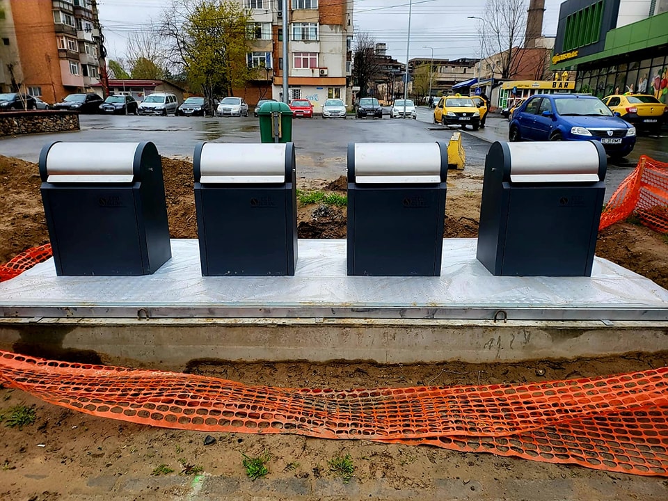 ■supraterane – care vor deservi în medie 200 de locuitori/locuințe, compuse din containere protejate faţă de accesul neautorizat, acționate prin card şi care includ un modul GSM pentru transmisia și citirea de informaţii.