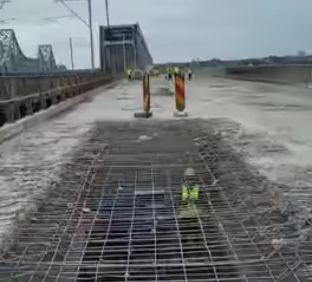 CNAIR a anunțat ieri, pe o rețea de socializare, că se lucrează intens la podul peste brațul Borcea de pe Autostrada A2 și a publicat imagini de pe șantier, cu operațiunile de demolare și de hidrodemolare a betonului degradat de pe calea II.