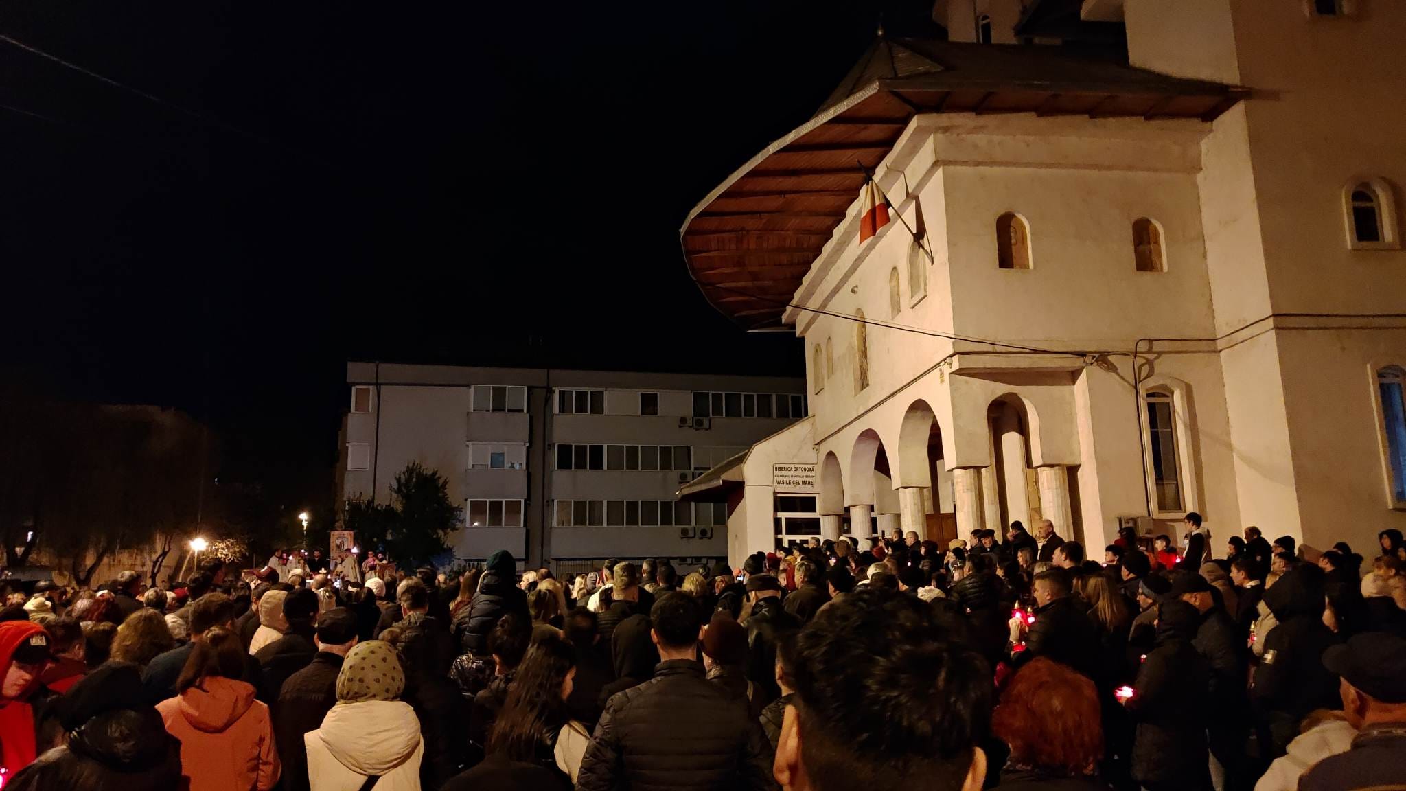 Credincioșii ortodocși au participat la Slujba de Înviere. Curtea Bisericii Sfinții Împărați Constantin și Elena din cartierul constănțean Km 4-5 s-a dovedit neîncăpătoare pentru toți cei prezenți.