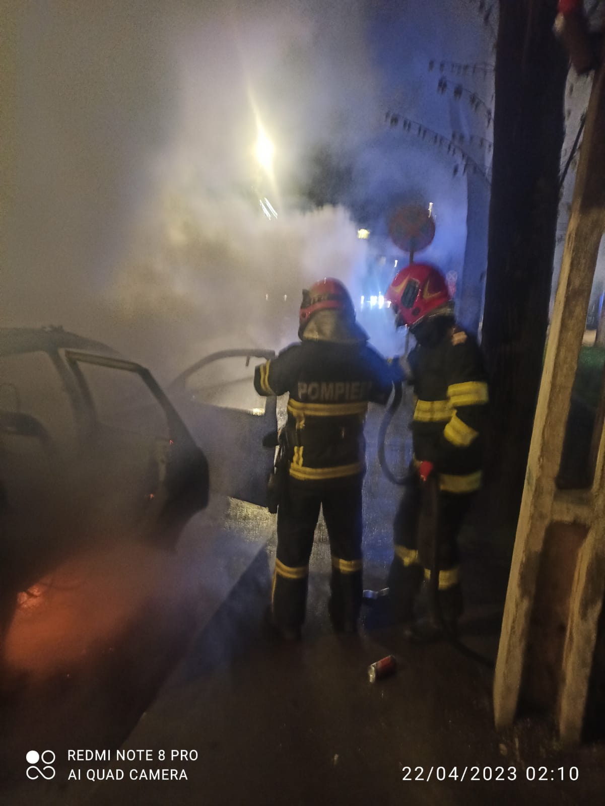 La sosirea echipajului de intervenție, focul se manifesta generalizat la întregul autoturism.
