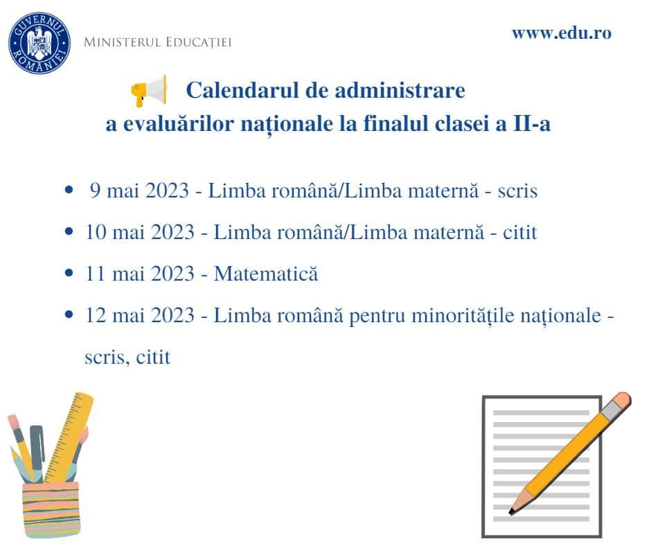 Ministerul Educaţiei a anunţat că mâine încep evaluările naționale la finalul claselor a II-a, a IV-a și a VI-a în anul școlar 2022-2023.