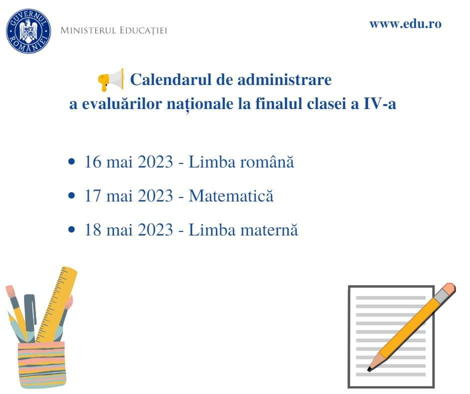 Evaluările naționale la finalul claselor a II-a, a IV-a și a VI-a în anul școlar 2022-2023, încep mâine
