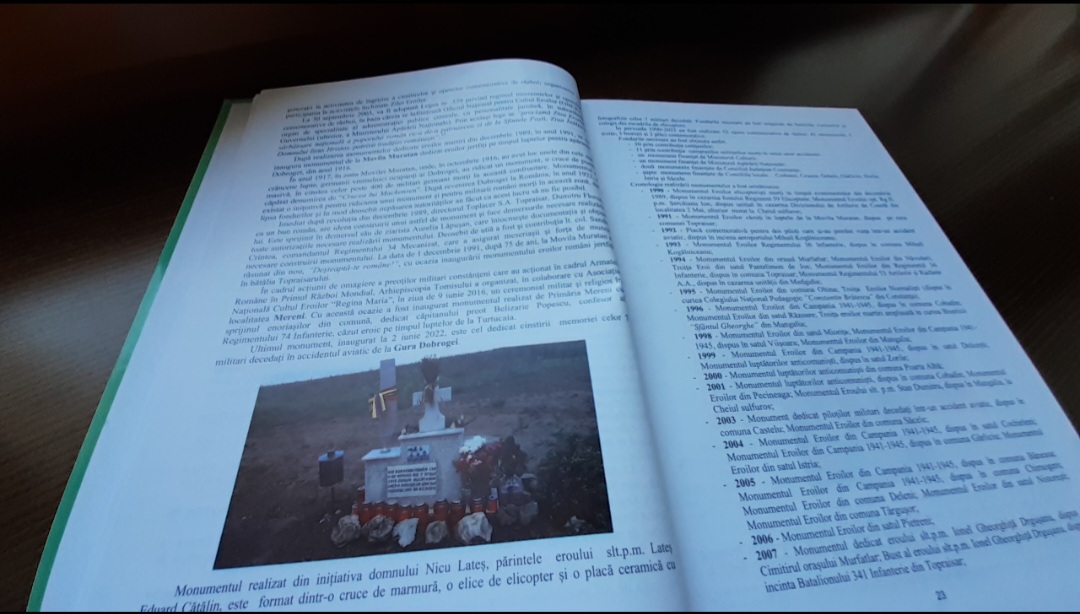 Cele 150 de exemplare ale monografiei scrisă de colonelul Remus Macovei, tehnoredactată de col. ing.în rezervă, Aurel Buciu, fotograf Mircea Stoian, vor fi oferite gratuit instituțiilor care se implică în cinstirea eroilor.