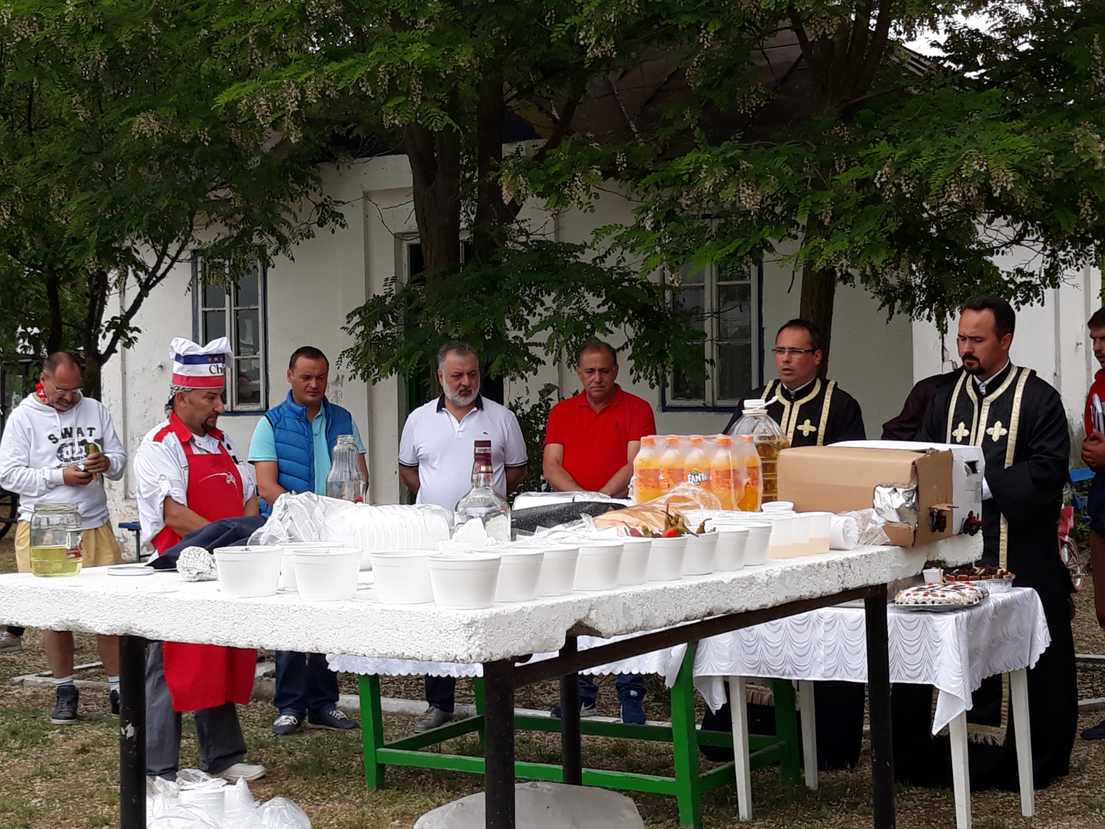 După slujba religioasă oficiată în cimitir, toți cei prezenți la eveniment sunt invitați la un parastas cu mâncare tradițională pentru toate gusturile.