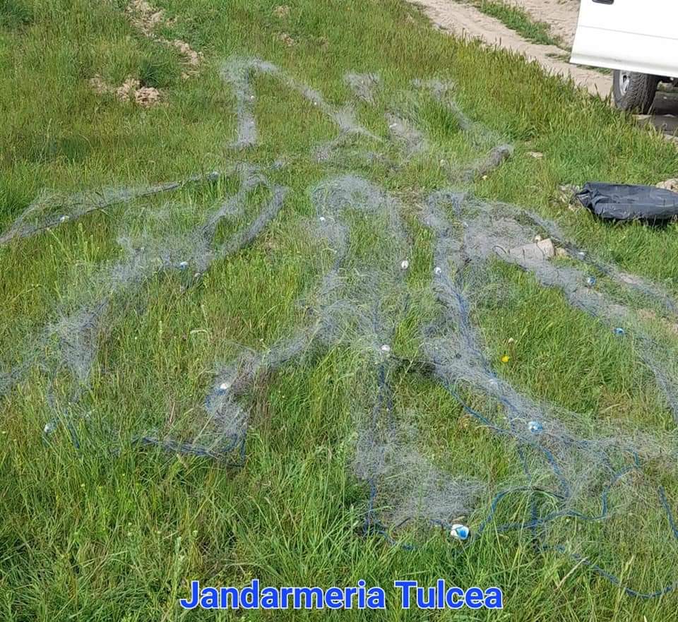 În urma controlului efectuat, asupra persoanei, au fost găsite 2 plase monofilament, cu lungimea de 70 de metri, și exemplare de pește din speciile lin, caracudă, știucă și caras.