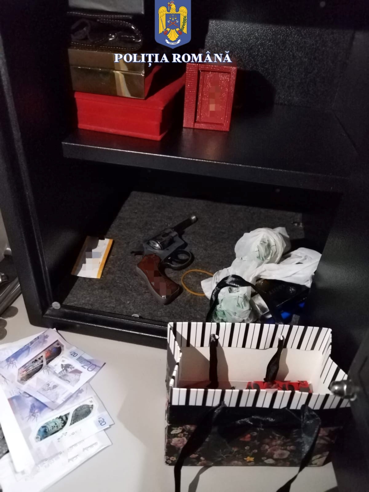 Astfel, în urma efectuării perchezițiilor au fost descoperite și ridicate, în vederea continuării cercetărilor de către autoritățile germane, mai multe telefoane mobile, tablete, dispozitive de stocare electronice și înscrisuri cu valoare probatorie. Totodată, au fost descoperite și ridicate o armă letală, respectiv un pistol, și 26 de cartușe de calibrul 22, pentru care nu exista autorizație de deținere sau folosire a armelor letale.