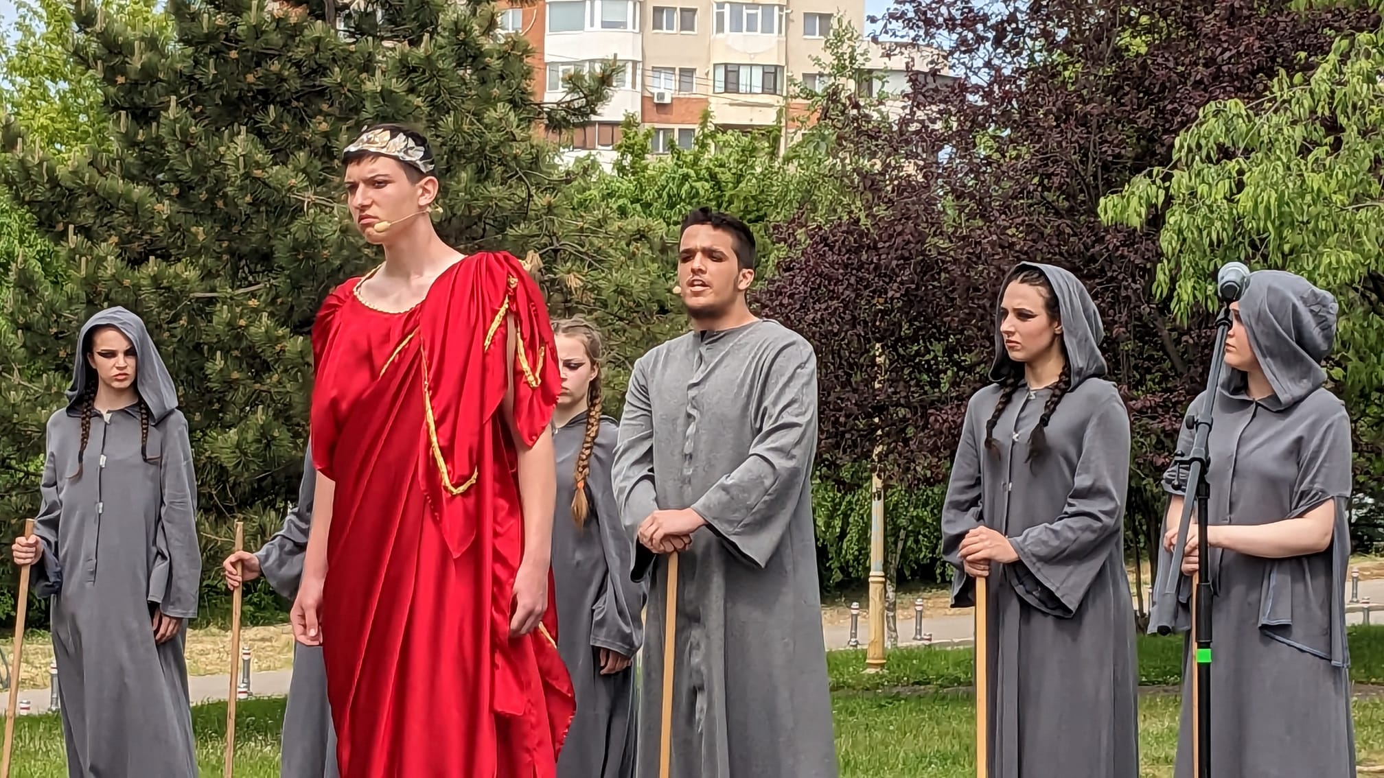 În Parcul Casei de Cultură, elevii Colegiului de Arte ”Regina Maria” au oferit un recital muzical, dar și un spectacol de teatru antic, interpretând „Antigona”, o adaptare a tragediei lui Sofocle: