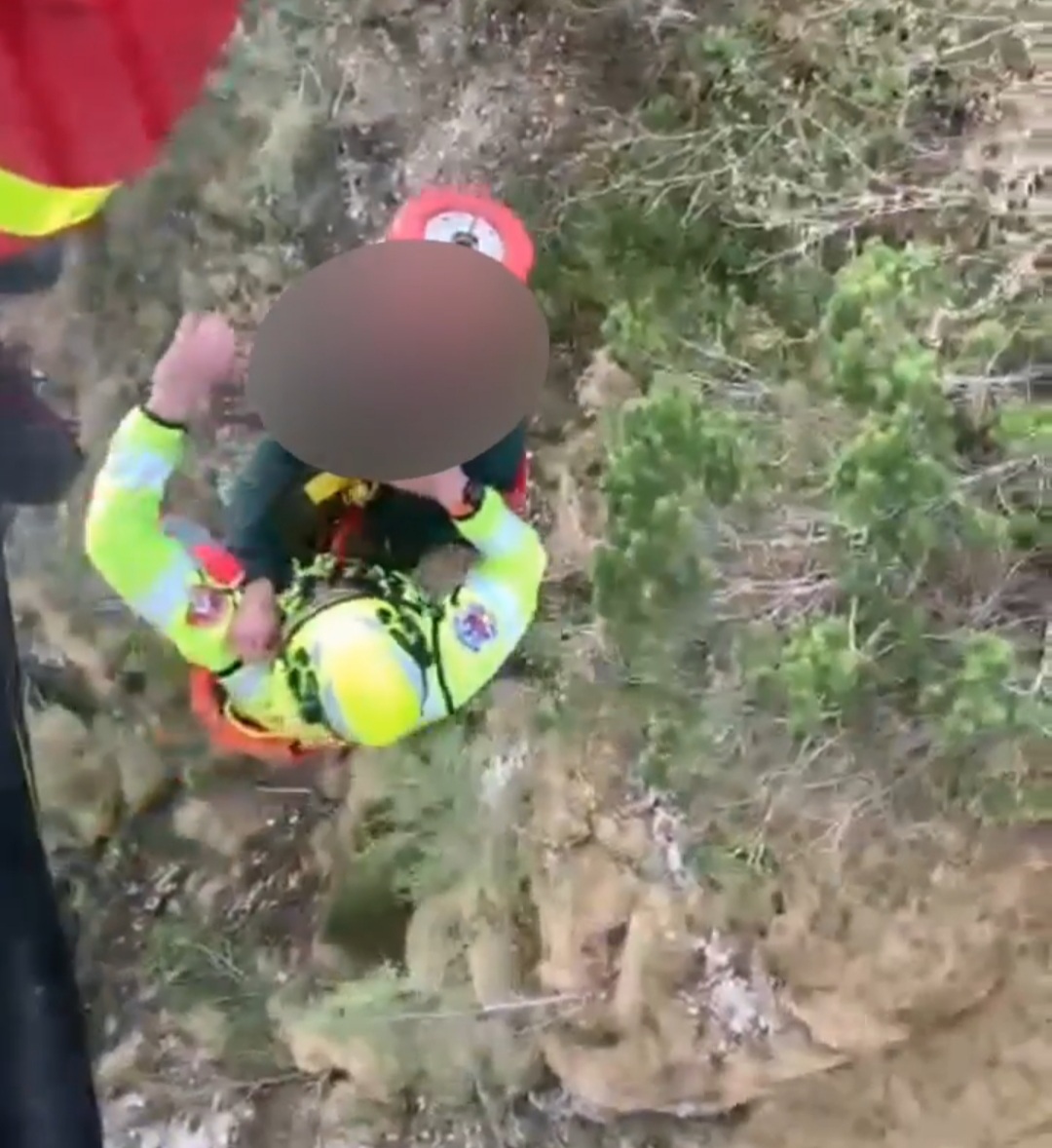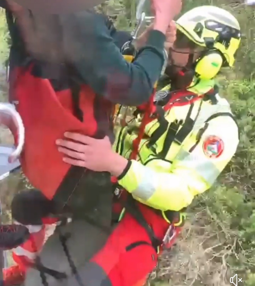 La faţa locului a fost chemat un elicopter, iar un salvator montan a fost coborât la turist, reuşind să-l recupereze prin troliere.
