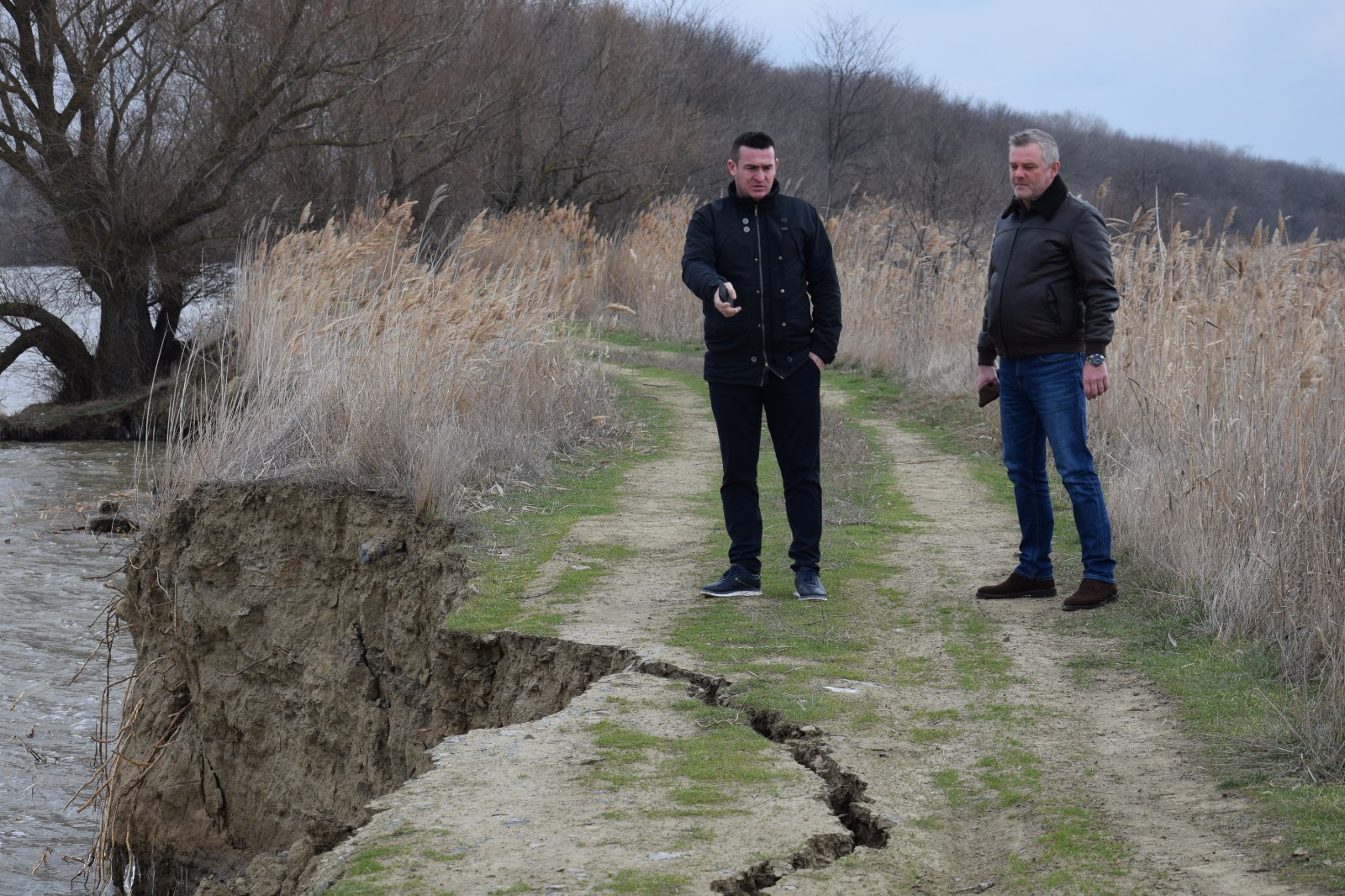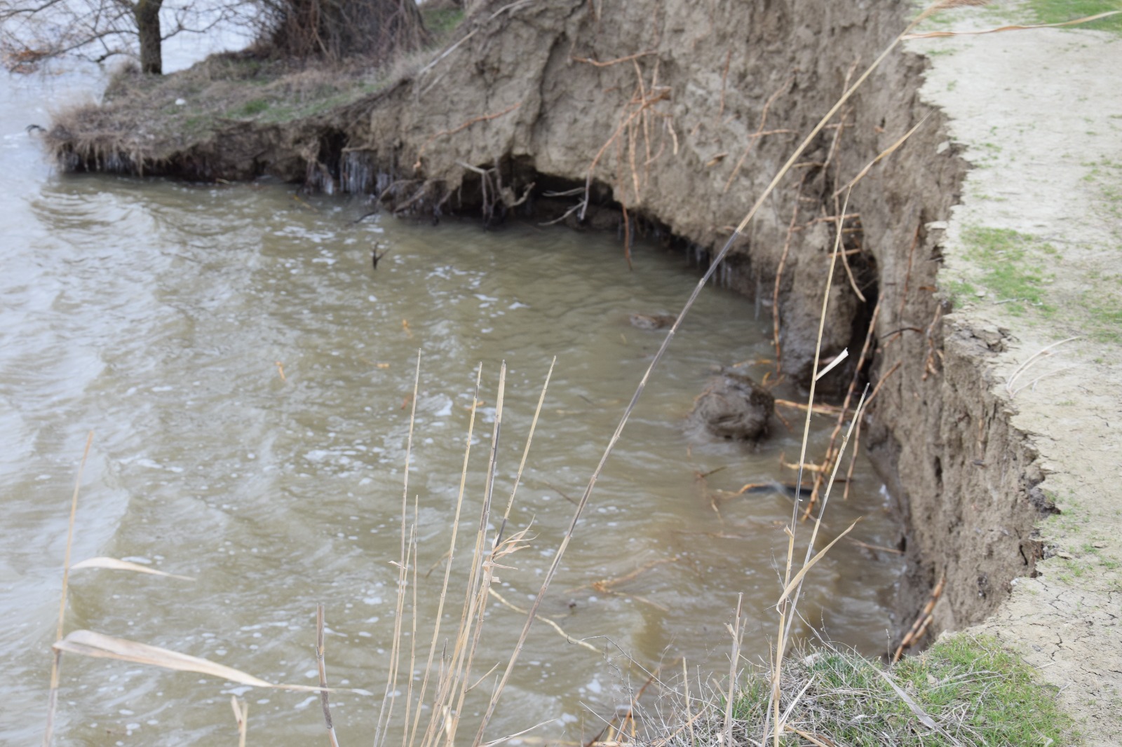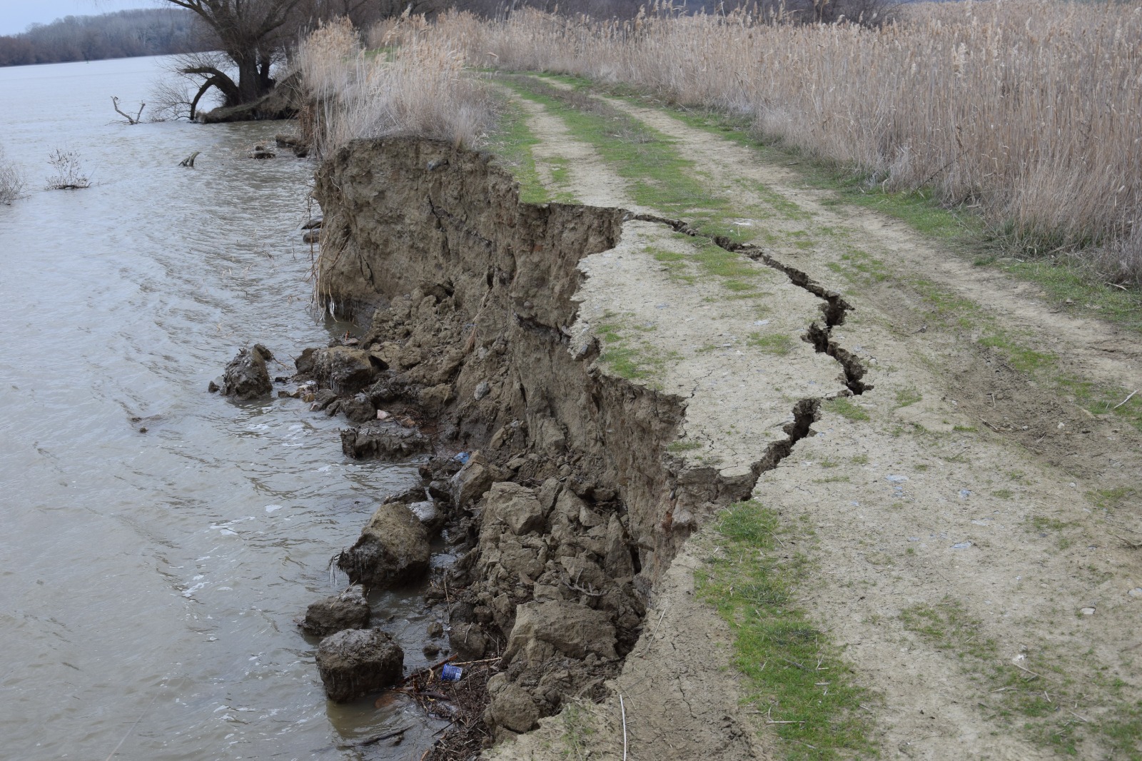Din fotografiile puse la dispoziție de Prefectură și realizate în luna martie a acestui an, se observă starea precară a digului: