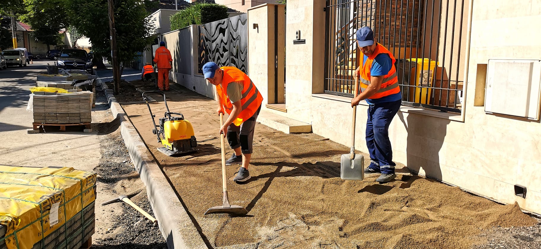 • Și pe strada Vasile Pârvan se refac trotuarele și se construiesc casete pentru spații verzi, unde vor fi plantați arbori și arbuști ornamentali. Se montează pavele și borduri noi, după ce trotuarele au fost decopertate și consolidate cu piatră.