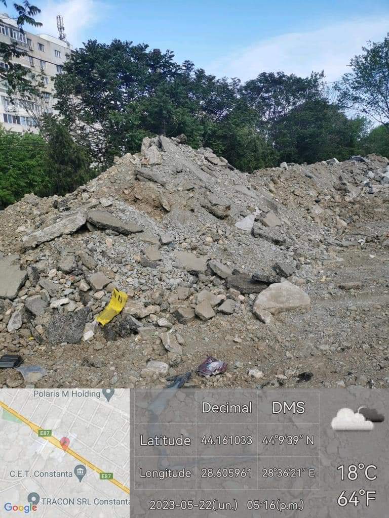 În incinta organizării de șantier, pe o suprafață de circa 5.600 mp au fost depozitate pământ, moloz cu bucăți de asfalt, din lucrări de decopertare a străzilor și trotuarelor, formându-se un depozit cu înălțimi de 3 metri.