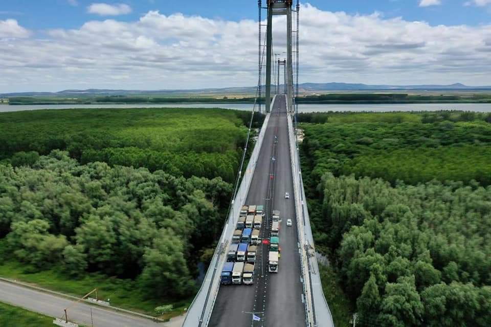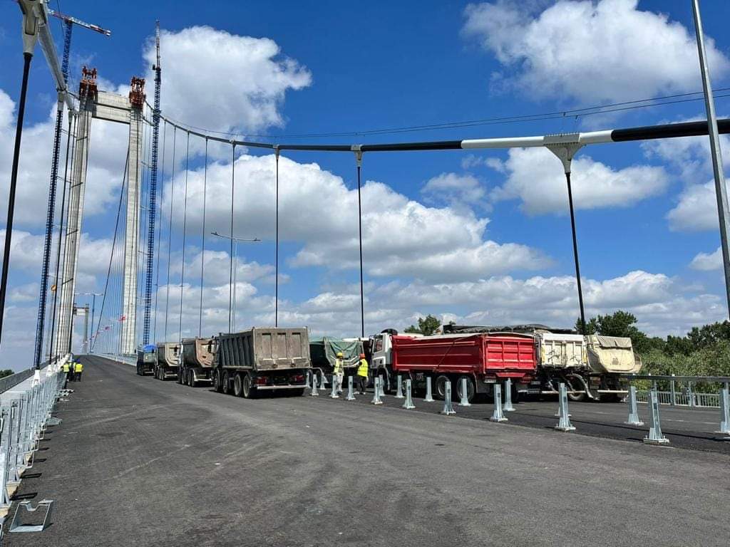 La Podul suspendat peste Dunăre de la Brăila/Galați – Tulcea, s-au finalizat testele de încercare a suprastructurii, ultimul fiind testul de încercare dinamică, realizat prin intermediul deplasării unor camioane încărcate pe pod, care au rulat cu o viteză constantă de aproximativ 80 km/h, trecând peste obstacole preamplasate – a informat secretarul de stat în Ministerul Transporturilor, Irinel Ionel Scrioșteanu, într-o postare pe facebook.