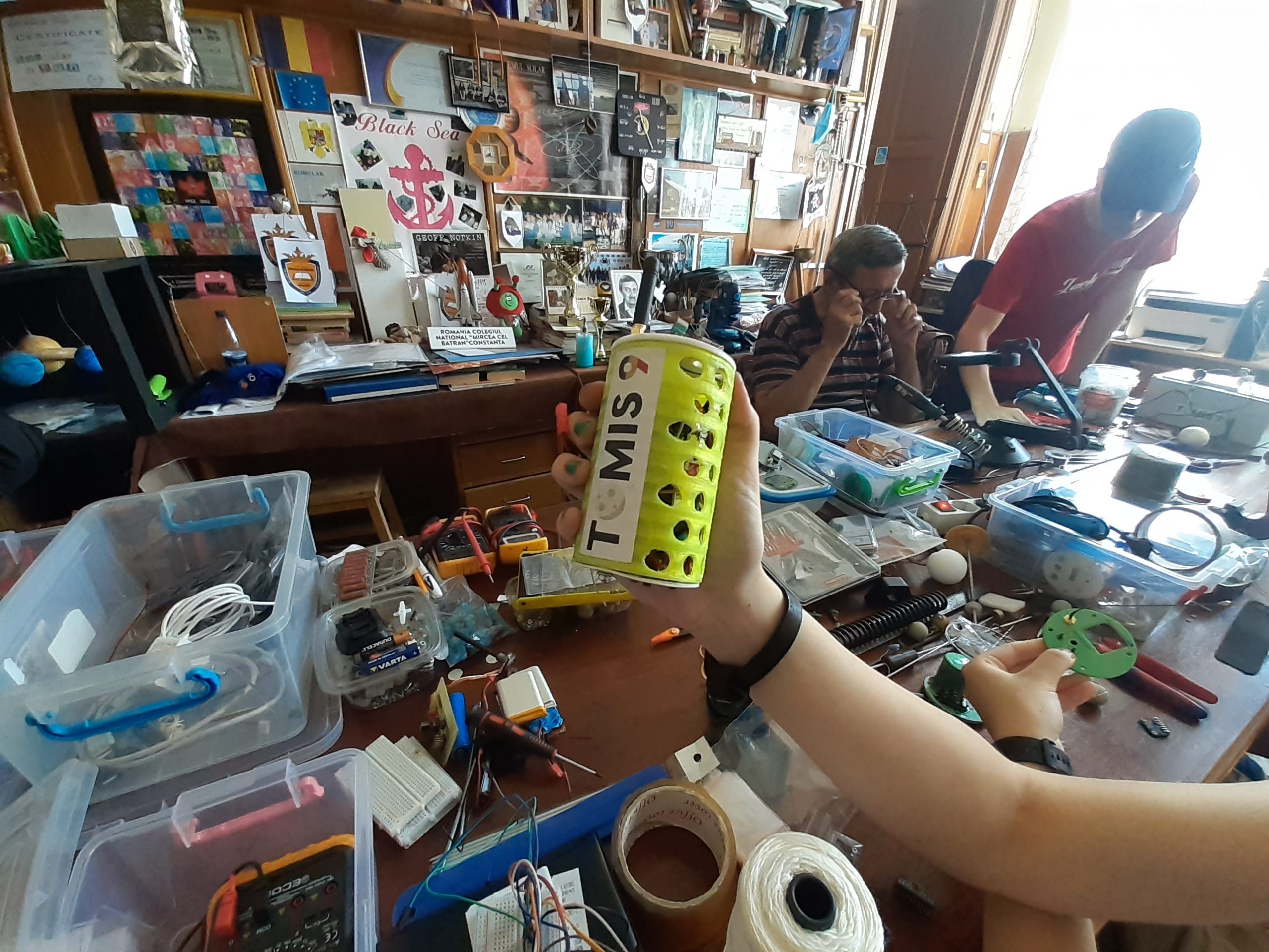 Proiectul nostru se numește CanSat, echipa noastră este Tomis 9. Noi, practic, construim un minit-satelit, în dimensiunile unei doze de suc, care are diferiţi senzori și module ce colectează anumite date, în timpul căderii. El va fi lansat cu o rachetă, iar în timpul căderii va colecta aceste date pe care noi mai târziu le vom interpreta și vom prezenta, pe scurt, unele concluzii.