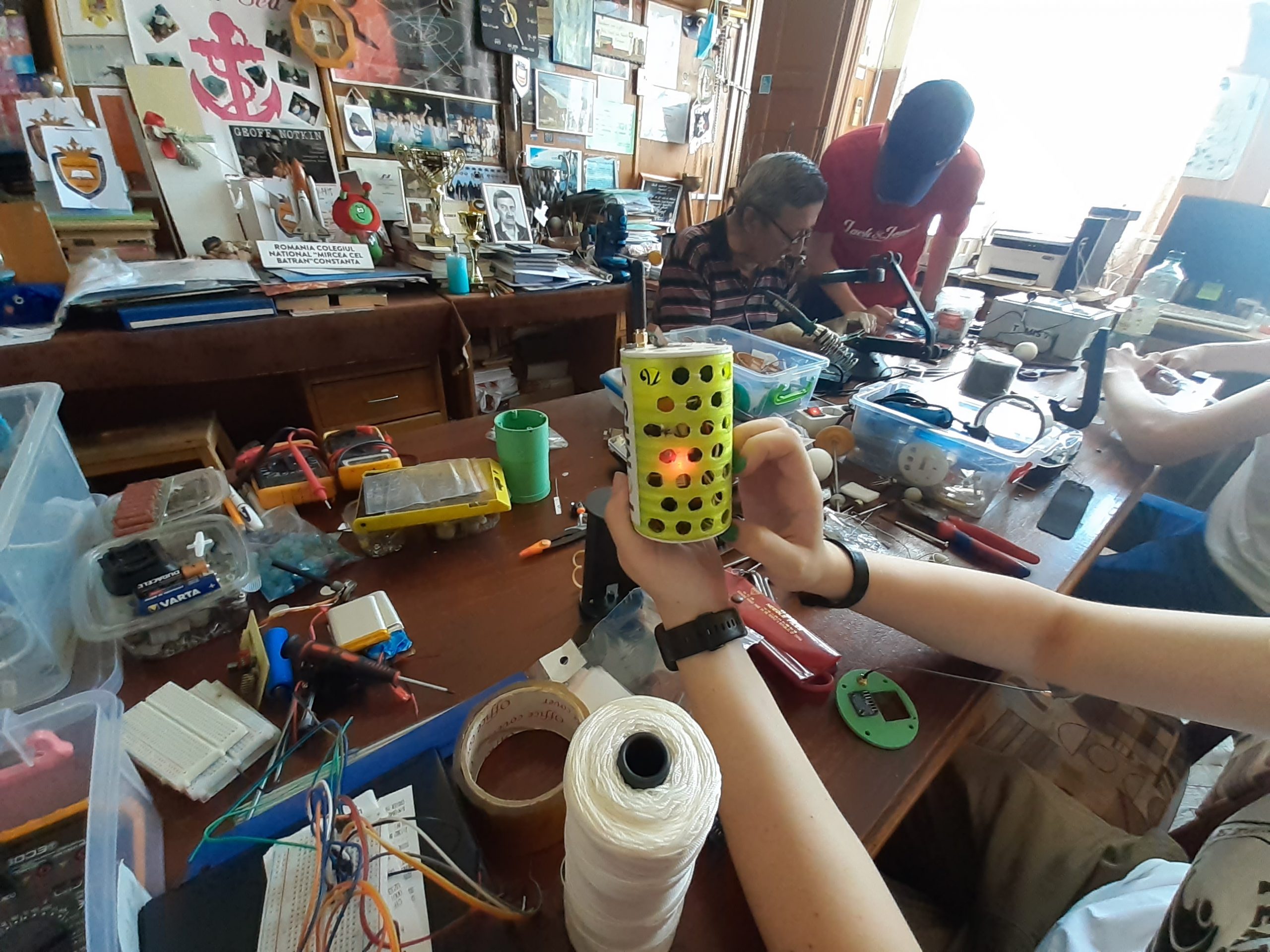 Da, în principiu, domnul profesor ne-a ajutat foarte mult pe partea de fizică. Noi mergem și la cercul de fizică și la cercul de robotică al școlii, de acolo l-am cunoscut pe colegul nostru mai mare, care ne-a explicat despre acest proiect și ne-a luat în echipa lui.